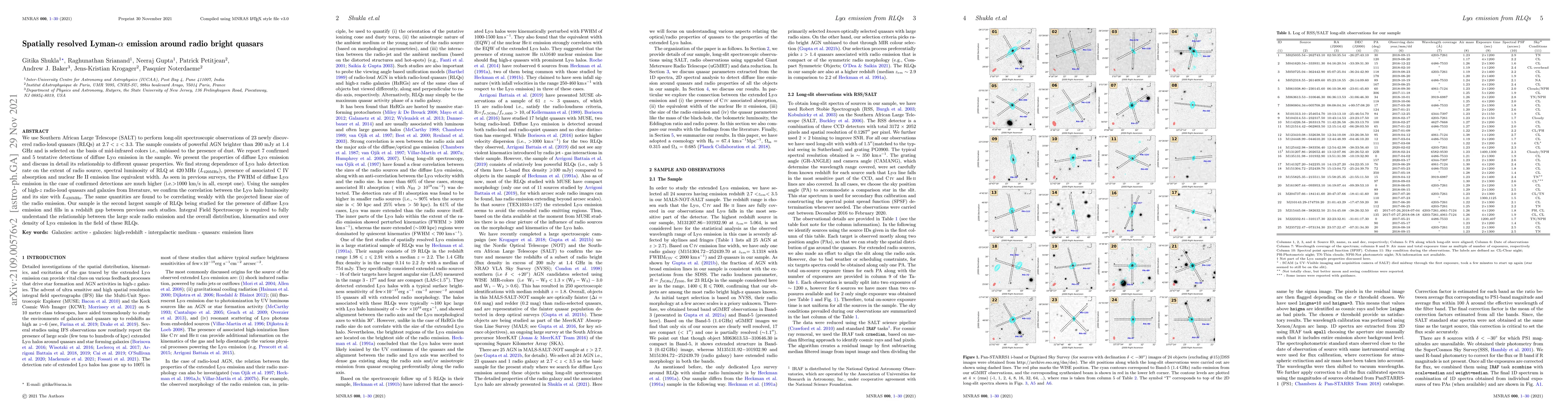 This study uses telescope observations to detect Lyman-alpha emission around radio-loud quasars, finding a strong correlation between the size of this emission and the quasar's radio power and distance from us.