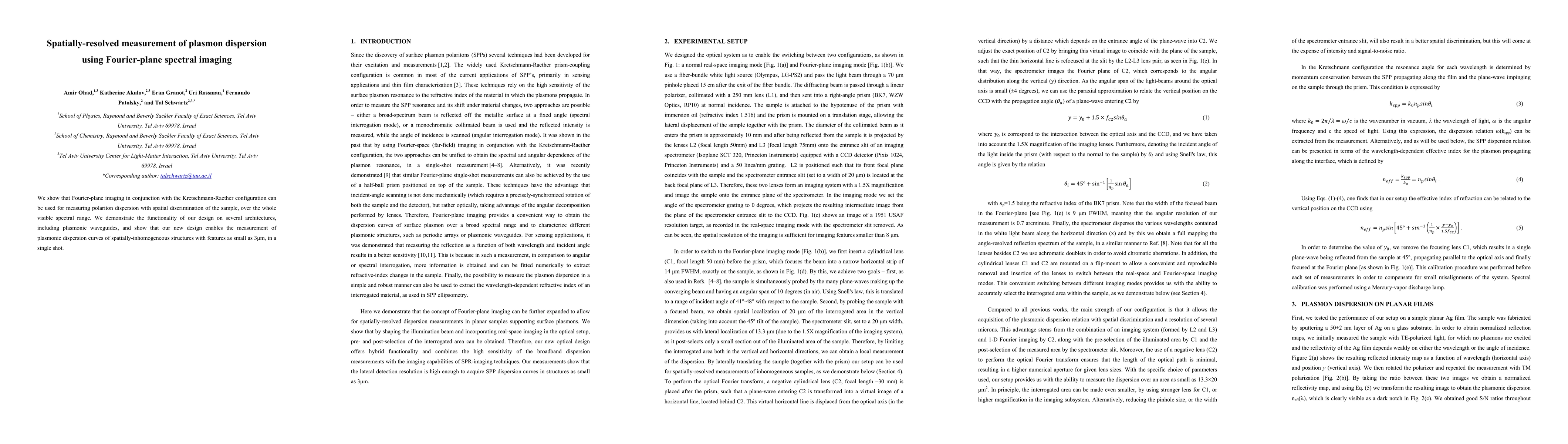 We show that Fourier-plane imaging in conjunction with the Kretschmann-Raether configuration can be used for measuring polariton dispersion with spatial discrimination of the sample, over the whole visible spectral range. We demonstrate the functionality of our design on several architectures, including plasmonic waveguides, and show that our new design enables the measurement of plasmonic dispersion curves of spatially-inhomogeneous structures with features as small as 3{\mu}m, in a single shot.