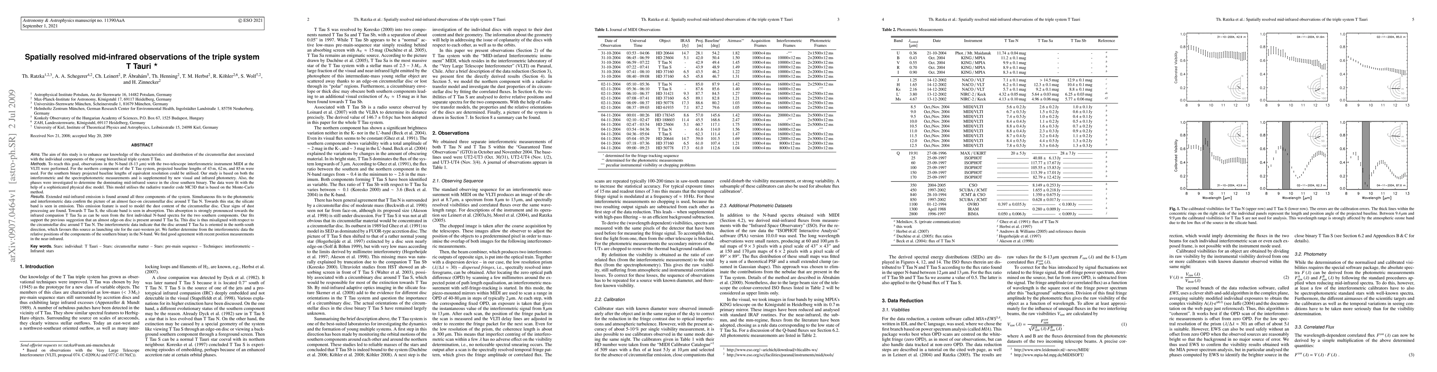 To enhance our knowledge of the characteristics and distribution of the circumstellar dust associated with the individual components of the young hierarchical triple system T Tau, observations in the N-band with MIDI at the VLTI were performed. Our study is based on both the interferometric and the spectrophotometric measurements and is supplemented by new visual and infrared photometry. Also, the phases were investigated to determine the dominating mid-infrared source in the close southern binary. The data were fit with the help of a sophisticated physical disc model. This model utilises the radiative transfer code MC3D that is based on the Monte-Carlo method. Extended mid-infrared emission is found around all three components of the system. Simultaneous fits to the photometric and interferometric data confirm the picture of an almost face-on circumstellar disc around T Tau N. Towards this star, the silicate band is seen in emission. This emission feature is used to model the dust content of the circumstellar disc. Clear signs of dust processing are found. Towards T Tau S, the silicate band is seen in absorption. This absorption is strongly pronounced towards the infrared companion T Tau Sa as can be seen from the first individual N-band spectra for the two southern components. Our fits support the previous suggestion that an almost edge-on disc is present around T Tau Sa. This disc is thus misaligned with respect to the circumstellar disc around T Tau N. The interferometric data indicate that the disc around T Tau Sa is oriented in the north-south direction, which favours this source as launching site for the east-western jet. We further determine from the interferometric data the relative positions of the components of the southern binary.