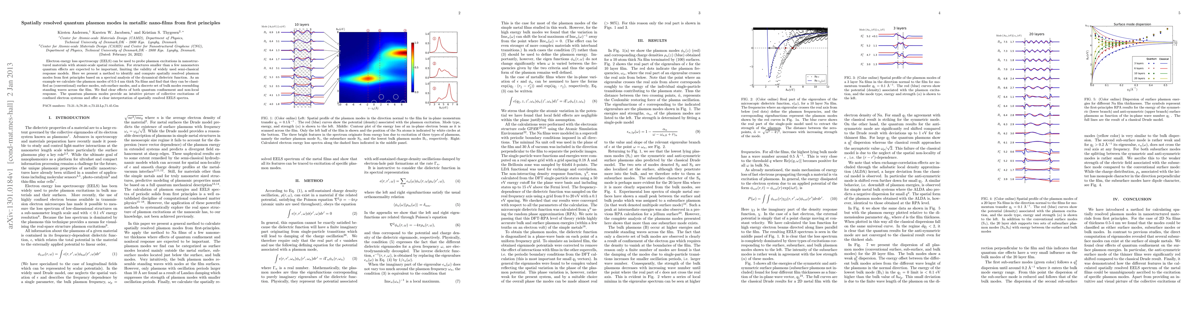 This paper presents a first-principles method to compute spatially resolved quantum plasmon modes in metallic nano-films, revealing distinct surface, sub-surface, and bulk modes. The study highlights the effects of quantum confinement and non-local response in electron energy loss spectroscopy spectra.