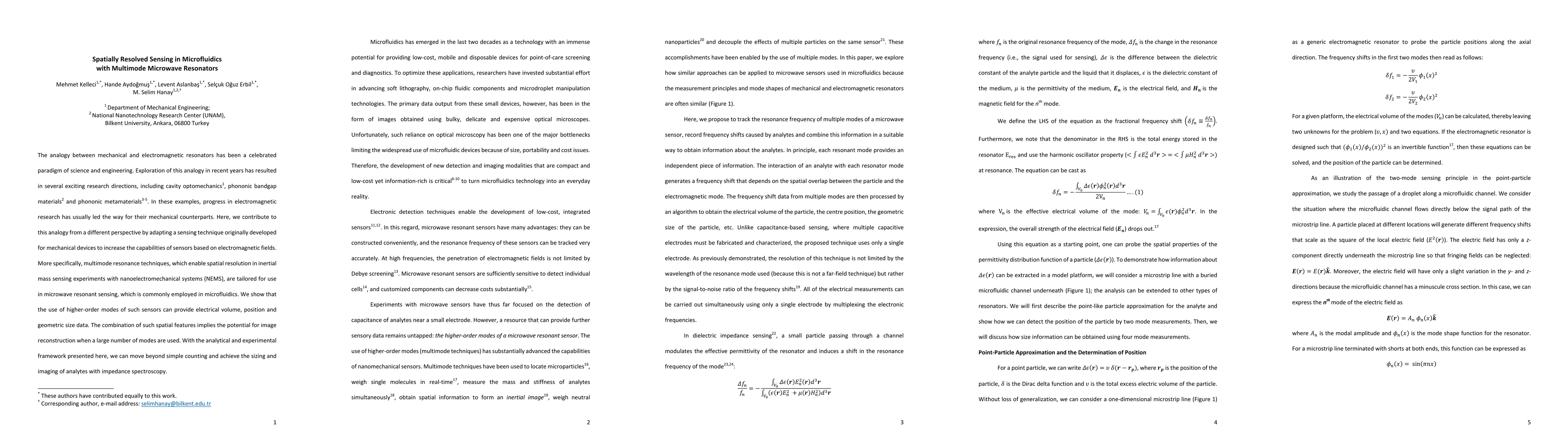 This paper explores the adaptation of multimode resonance techniques from mechanical devices to microwave resonant sensing in microfluidics, demonstrating how higher-order modes can provide spatial resolution for volume, position, and geometric size data, potentially enabling imaging reconstruction and advanced analyte sizing.