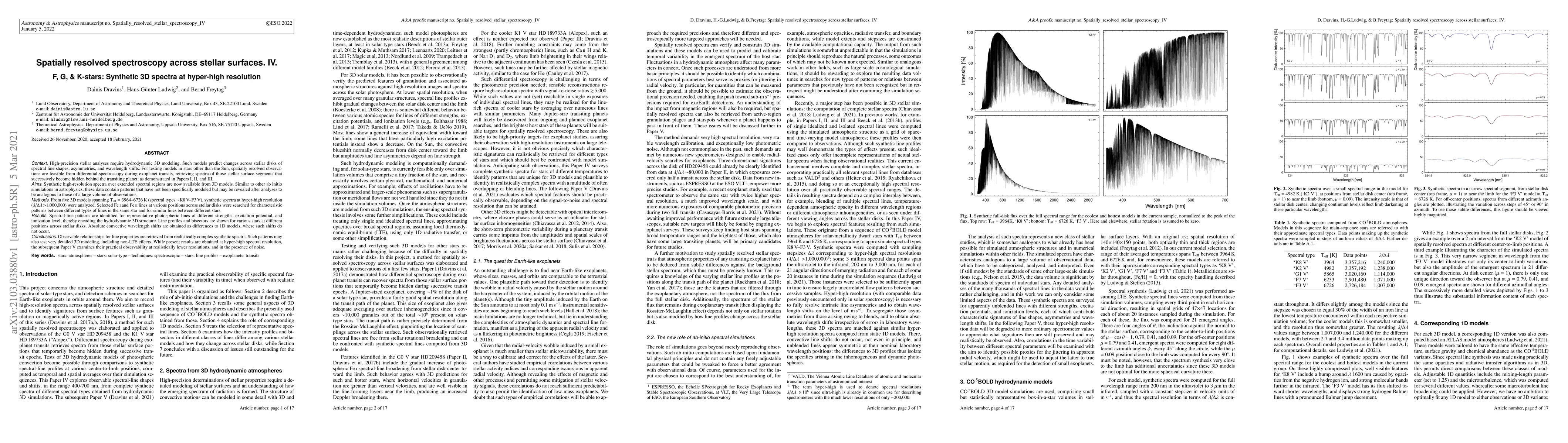 Researchers created synthetic 3D spectra of stars F, G, and K using advanced computer modeling, revealing patterns that could help improve understanding of stellar surfaces and test complex models.