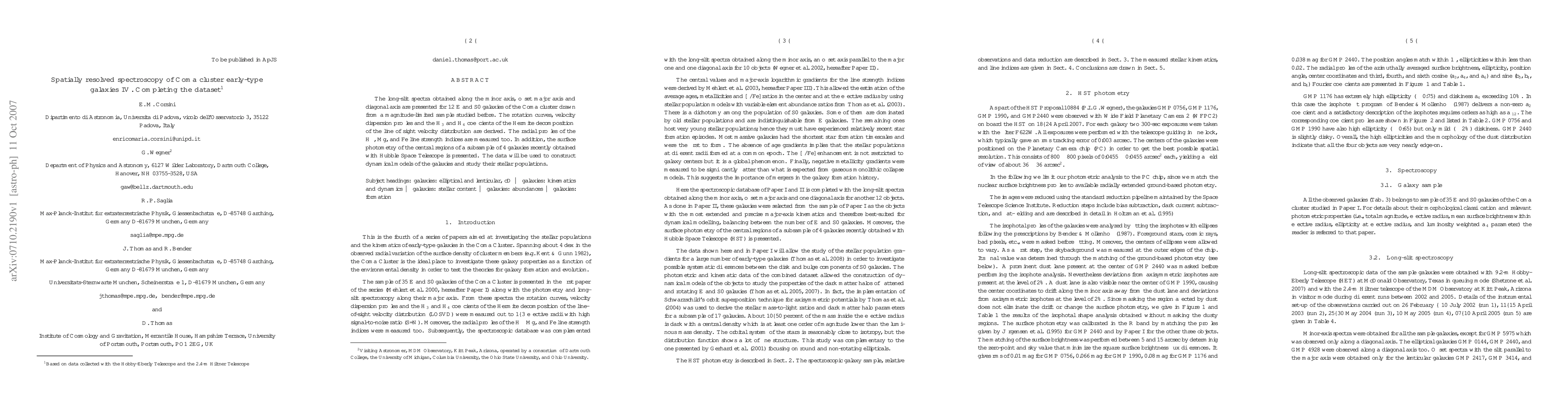 The long-slit spectra obtained along the minor axis, offset major axis and diagonal axis are presented for 12 E and S0 galaxies of the Coma cluster drawn from a magnitude-limited sample studied before. The rotation curves, velocity dispersion profiles and the H_3 and H_4 coefficients of the Hermite decomposition of the line of sight velocity distribution are derived. The radial profiles of the Hbeta, Mg, and Fe line strength indices are measured too. In addition, the surface photometry of the central regions of a subsample of 4 galaxies recently obtained with Hubble Space Telescope is presented. The data will be used to construct dynamical models of the galaxies and study their stellar populations.