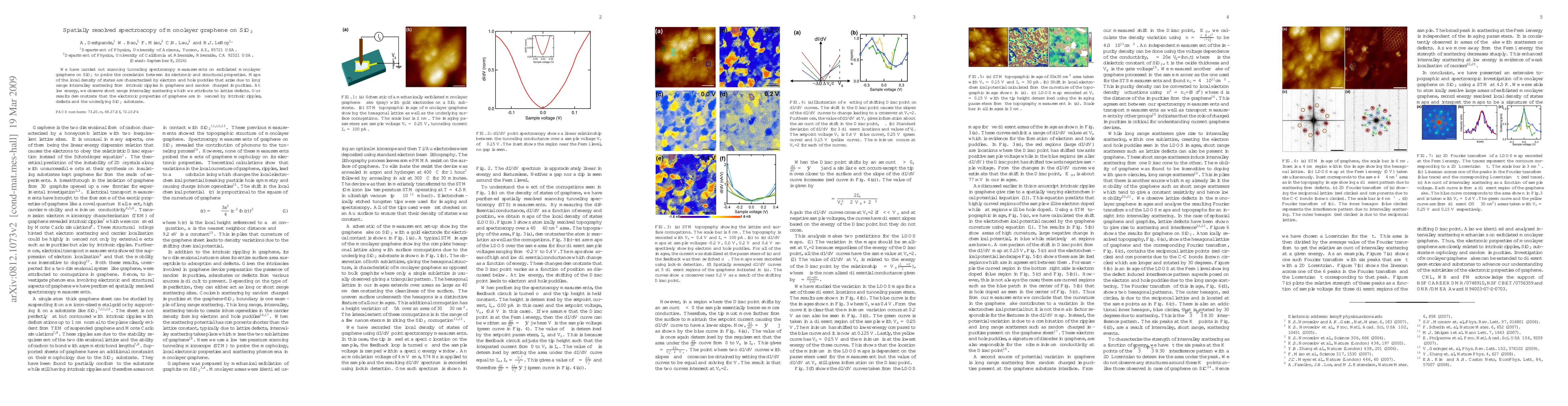 We have carried out scanning tunneling spectroscopy measurements on exfoliated monolayer graphene on SiO$_2$ to probe the correlation between its electronic and structural properties. Maps of the local density of states are characterized by electron and hole puddles that arise due to long range intravalley scattering from intrinsic ripples in graphene and random charged impurities. At low energy, we observe short range intervalley scattering which we attribute to lattice defects. Our results demonstrate that the electronic properties of graphene are influenced by intrinsic ripples, defects and the underlying SiO$_2$ substrate.