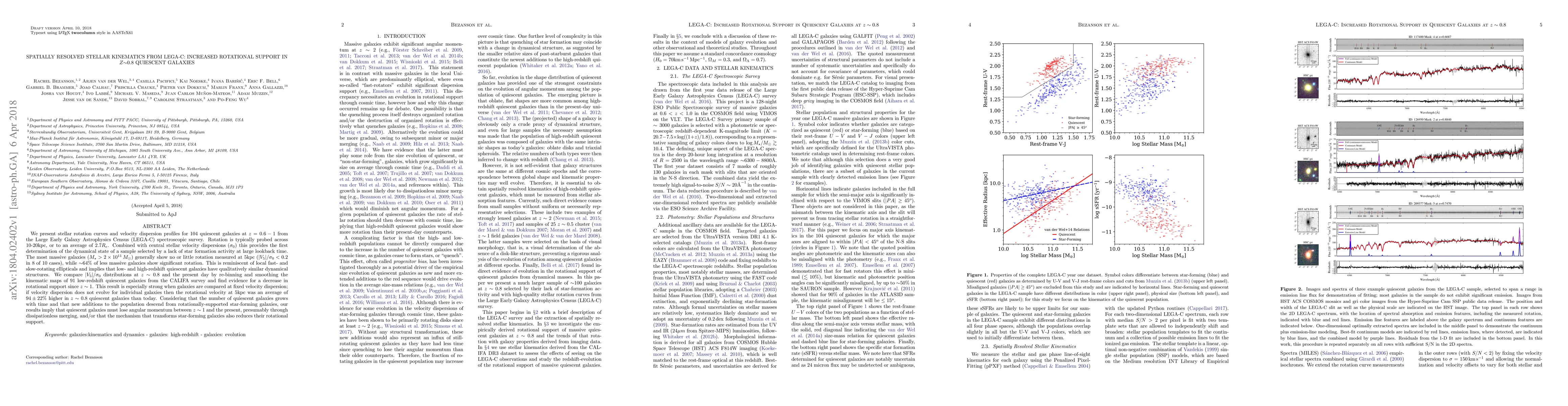 We present stellar rotation curves and velocity dispersion profiles for 104 quiescent galaxies at $z=0.6-1$ from the Large Early Galaxy Astrophysics Census (LEGA-C) spectroscopic survey. Rotation is typically probed across 10-20kpc, or to an average of 2.7${\rm R_e}$. Combined with central stellar velocity dispersions ($\sigma_0$) this provides the first determination of the dynamical state of a sample selected by a lack of star formation activity at large lookback time. The most massive galaxies ($M_{\star}>2\times10^{11}\,M_{\odot}$) generally show no or little rotation measured at 5kpc ($|V_5|/\sigma_0<0.2$ in 8 of 10 cases), while ${\sim}64\%$ of less massive galaxies show significant rotation. This is reminiscent of local fast- and slow-rotating ellipticals and implies that low- and high-redshift quiescent galaxies have qualitatively similar dynamical structures. We compare $|V_5|/\sigma_0$ distributions at $z\sim0.8$ and the present day by re-binning and smoothing the kinematic maps of 91 low-redshift quiescent galaxies from the CALIFA survey and find evidence for a decrease in rotational support since $z\sim1$. This result is especially strong when galaxies are compared at fixed velocity dispersion; if velocity dispersion does not evolve for individual galaxies then the rotational velocity at 5kpc was an average of ${94\pm22\%}$ higher in $z\sim0.8$ quiescent galaxies than today. Considering that the number of quiescent galaxies grows with time and that new additions to the population descend from rotationally-supported star-forming galaxies, our results imply that quiescent galaxies must lose angular momentum between $z\sim1$ and the present, presumably through dissipationless merging, and/or that the mechanism that transforms star-forming galaxies also reduces their rotational support.