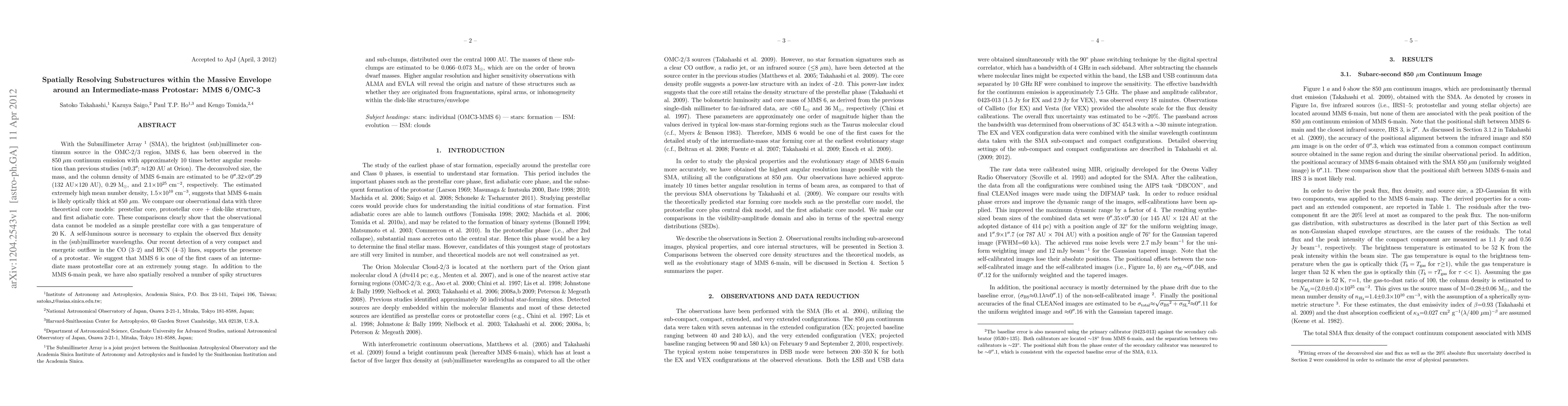 This paper uses the Submillimeter Array to observe MMS 6, an intermediate-mass protostar in the Orion region, revealing substructures within its massive envelope. The data suggest MMS 6-main is a young protostellar core with a protostar, rather than a prestellar core, and includes sub-clumps potentially formed by fragmentation.