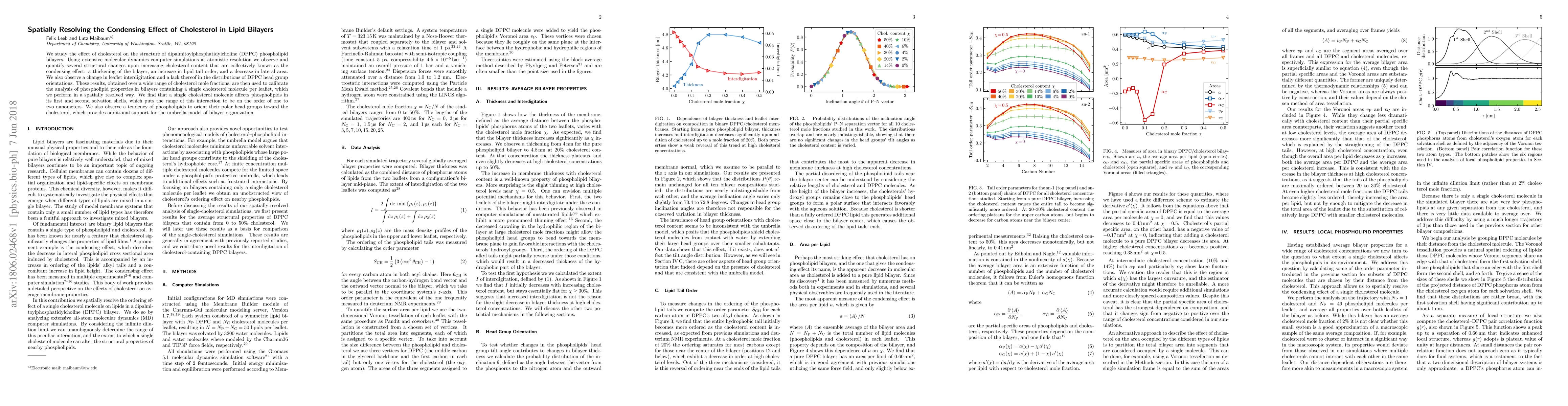 This study uses molecular dynamics simulations to investigate how cholesterol alters the structure of DPPC lipid bilayers, finding a thickening, increased lipid tail order, and decreased lateral area—collectively termed the condensing effect. The research reveals a spatially resolved influence of a single cholesterol molecule on surrounding phospholipids within a range of one to two nanometers.