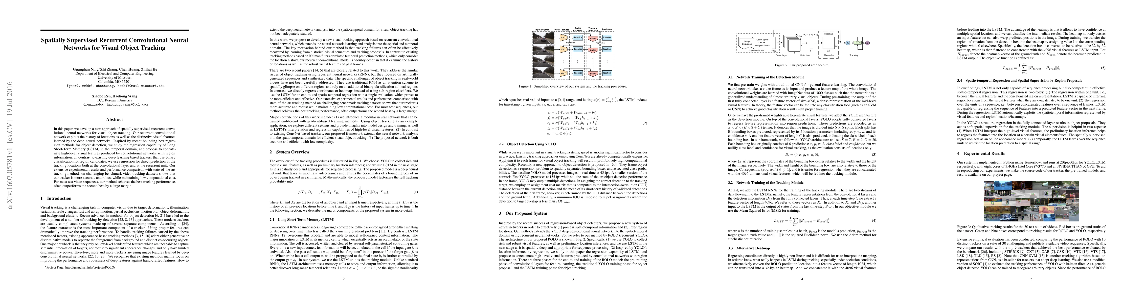 This paper introduces a spatially supervised recurrent convolutional neural network for visual object tracking, combining LSTM regression with convolutional features to predict object locations directly. The proposed method outperforms existing trackers in accuracy and robustness while maintaining computational efficiency.