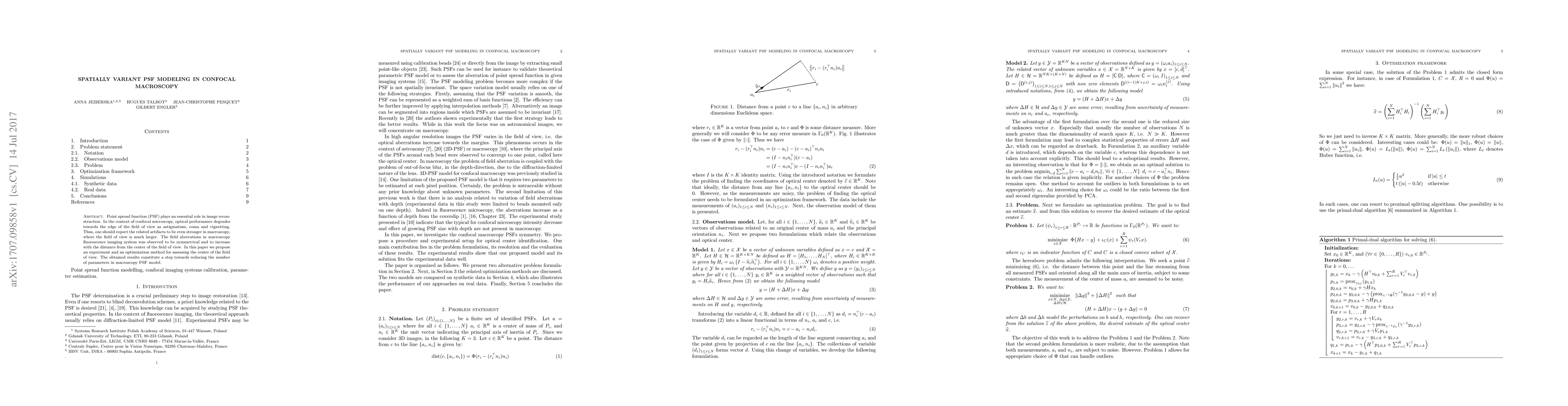 Researchers developed a method to optimize PSF modeling in confocal macroscopy, focusing on reducing artifacts near the edge of the field of view due to astigmatism, coma, and vignetting. The study aims to improve image reconstruction by identifying the center of the field of view.