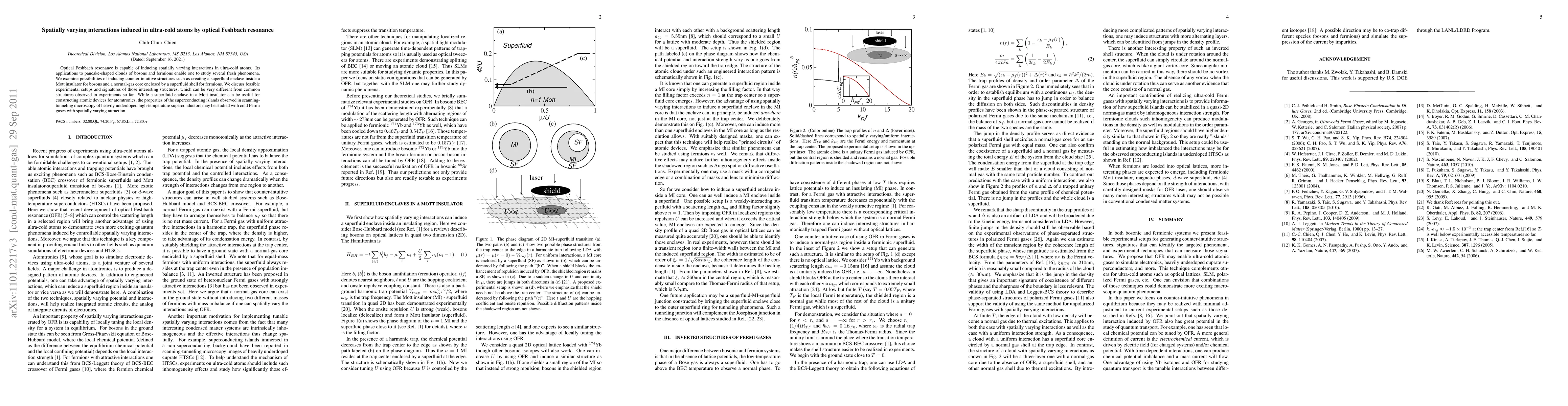 This paper explores how optical Feshbach resonance can create spatially varying interactions in ultra-cold atomic gases, enabling the study of novel phenomena such as superfluid enclaves within Mott insulators for bosons and superfluid shells enclosing normal gas cores for fermions. It discusses potential experimental setups and unique signatures of these counter-intuitive structures.