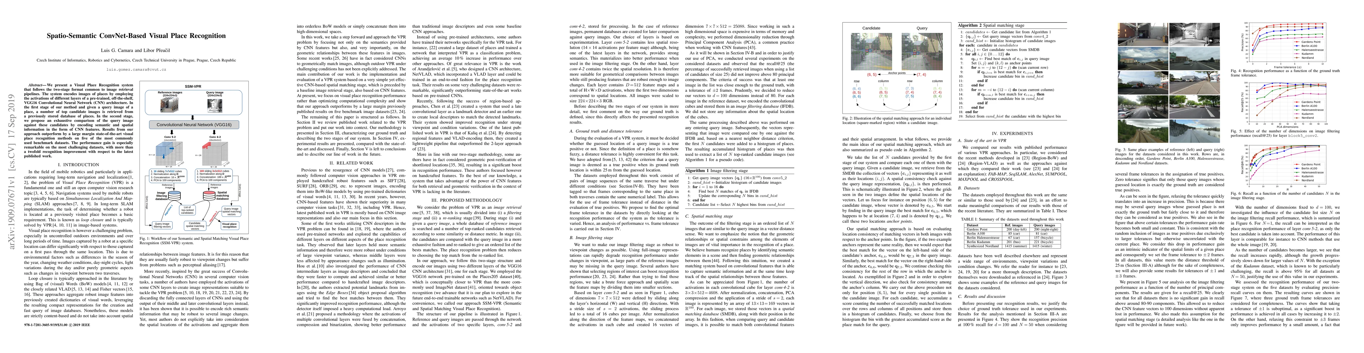 This paper introduces a Visual Place Recognition system using a two-stage approach that leverages VGG16 CNN features for encoding and comparing semantic and spatial information, significantly outperforming existing methods on benchmark datasets, especially on challenging ones.