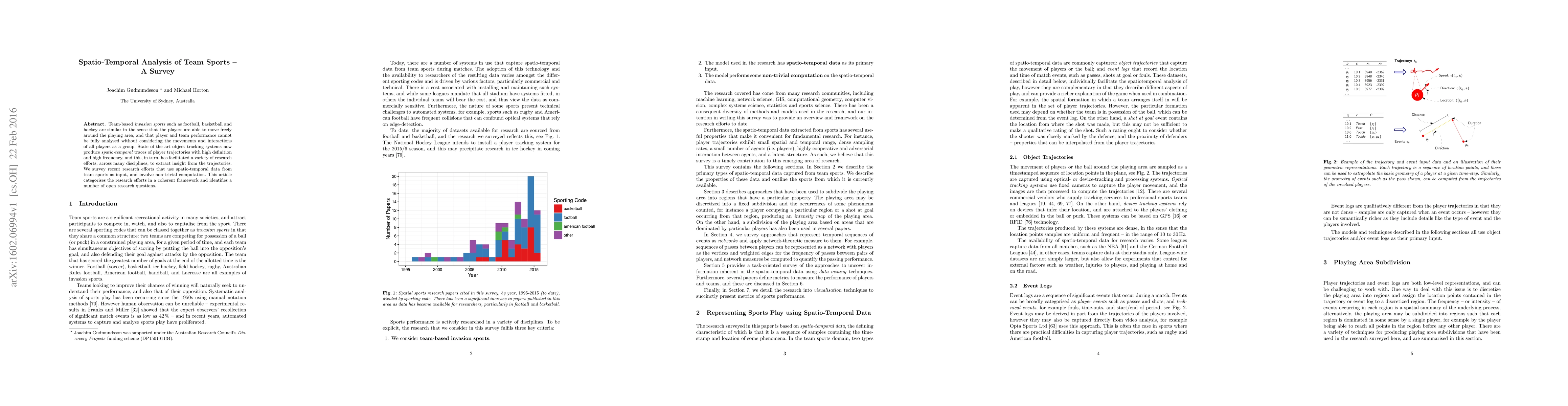 This paper surveys recent research on the analysis of team sports using high-definition, high-frequency spatio-temporal data from player movements. It categorizes these efforts and identifies open research questions, highlighting the potential for interdisciplinary insights.