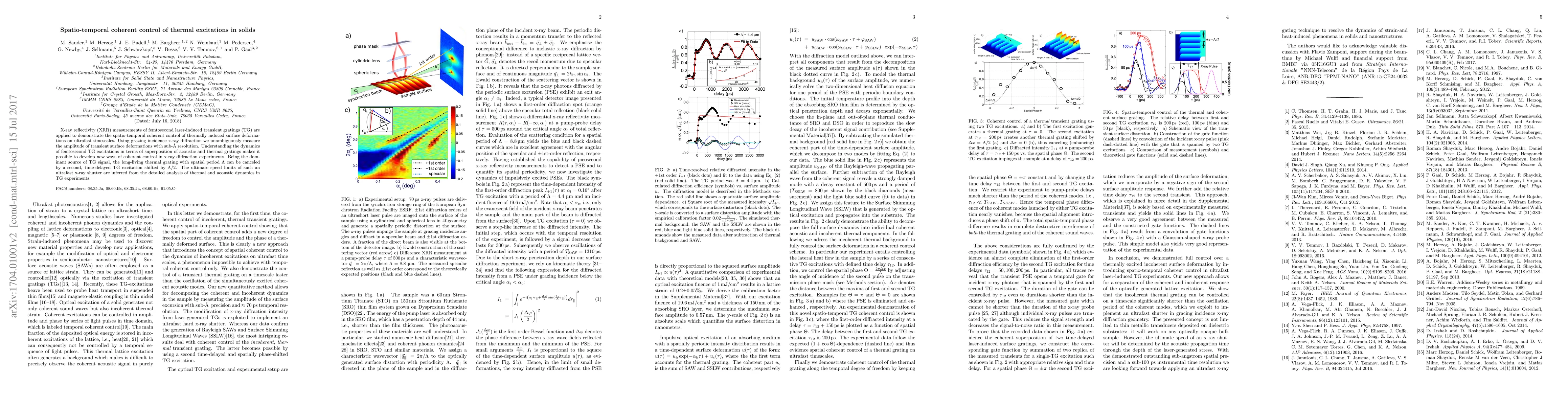 This paper demonstrates the spatio-temporal coherent control of thermally induced surface deformations in solids using femtosecond laser-induced transient gratings, measured via X-ray reflectivity with sub-\AA{} resolution. The study reveals the potential for ultrafast X-ray shutter applications by canceling long-living thermal gratings with a time-delayed second excitation.