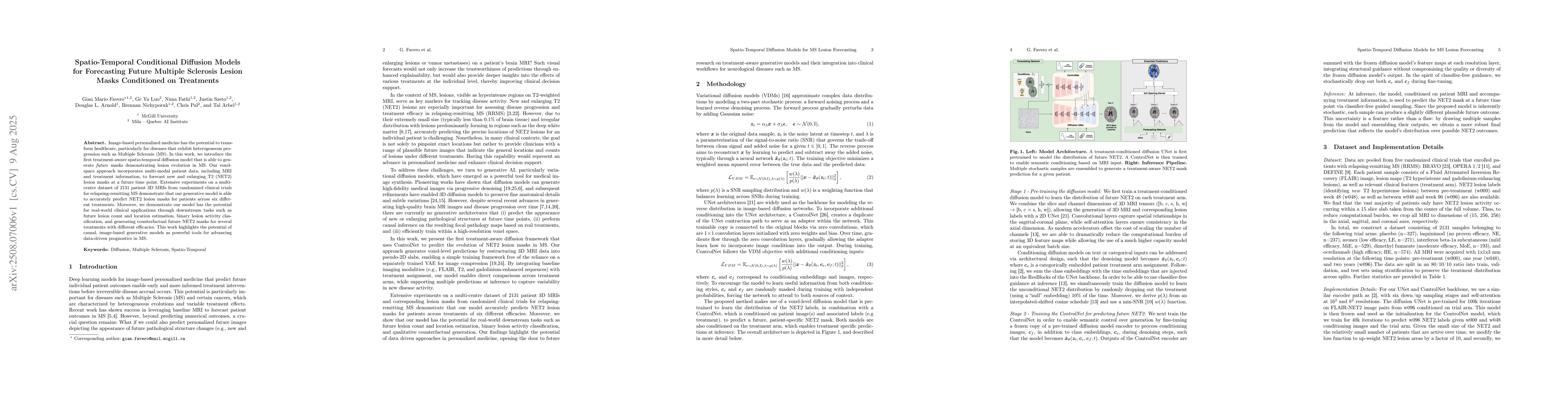 This research introduces a novel spatio-temporal diffusion model for forecasting future Multiple Sclerosis (MS) lesion masks, considering various treatments. It demonstrates accurate prediction of new and enlarging T2 lesion masks across six treatments using multi-modal patient data, with potential for real-world clinical applications like future lesion estimation and classification.