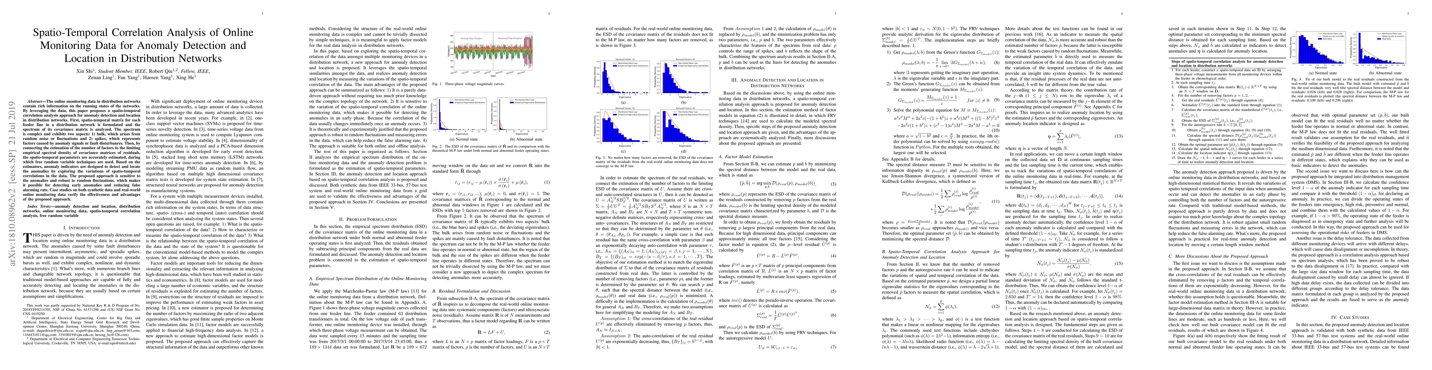 This paper proposes a spatio-temporal correlation analysis method for detecting and locating anomalies in distribution networks using online monitoring data. The approach accurately estimates spatio-temporal parameters and designs anomaly indicators to reduce false alarms, verified through synthetic and real-world data.