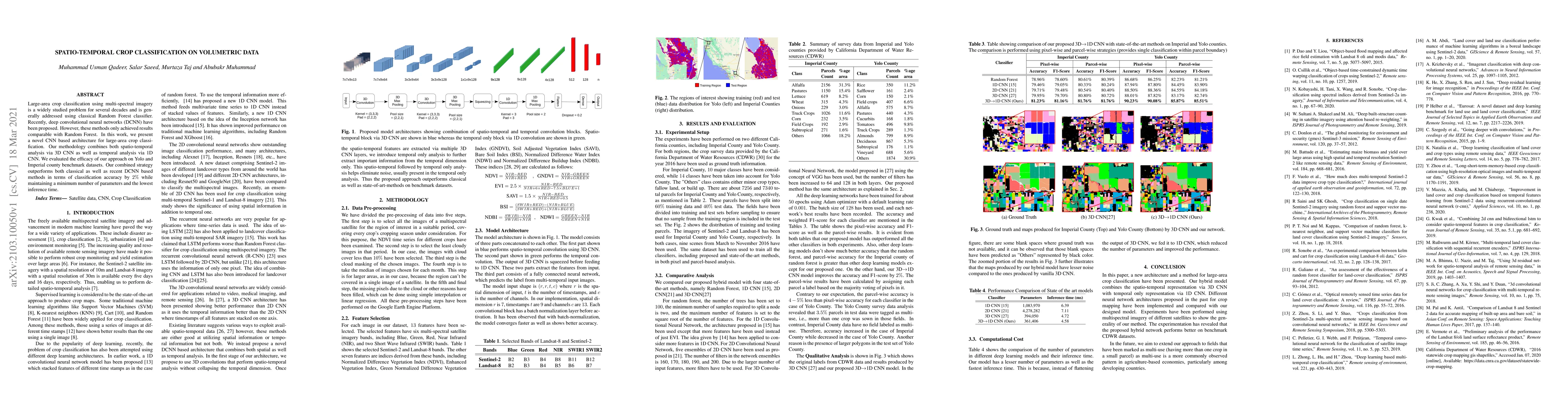 Large-area crop classification using multi-spectral imagery is a widely studied problem for several decades and is generally addressed using classical Random Forest classifier. Recently, deep convolutional neural networks (DCNN) have been proposed. However, these methods only achieved results comparable with Random Forest. In this work, we present a novel CNN based architecture for large-area crop classification. Our methodology combines both spatio-temporal analysis via 3D CNN as well as temporal analysis via 1D CNN. We evaluated the efficacy of our approach on Yolo and Imperial county benchmark datasets. Our combined strategy outperforms both classical as well as recent DCNN based methods in terms of classification accuracy by 2% while maintaining a minimum number of parameters and the lowest inference time.