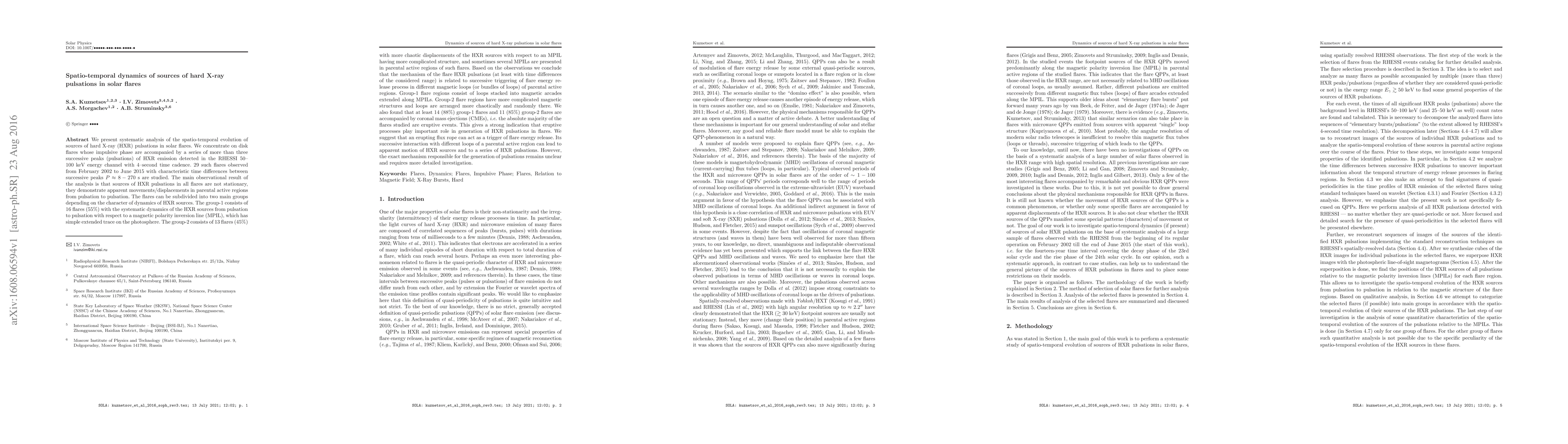 This paper analyzes the spatio-temporal dynamics of hard X-ray pulsations in solar flares, finding that HXR sources exhibit apparent displacements. The flares are categorized into two groups based on the dynamics of HXR sources relative to magnetic polarity inversion lines, suggesting that the HXR pulsations are linked to successive energy releases in different magnetic loops.