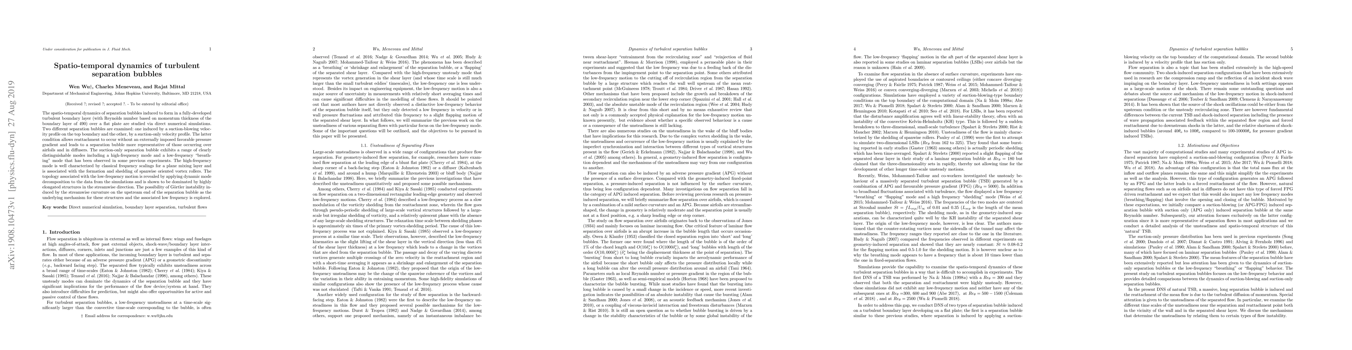 This work presents new insights into the mechanisms of turbulent boundary layer separation and reattachment, which is different from existing research in this area