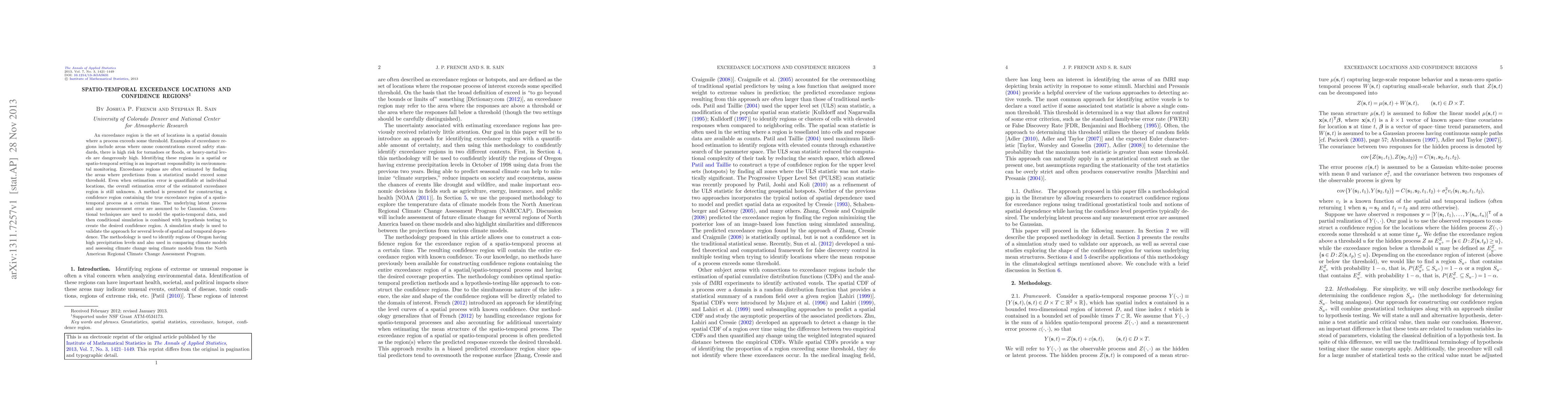 This paper presents a method for constructing confidence regions for spatio-temporal exceedance regions, such as areas with high ozone concentrations or heavy-metal levels, using Gaussian latent processes and conditional simulation. The approach is validated through simulations and applied to identify high precipitation regions in Oregon and assess climate change models.