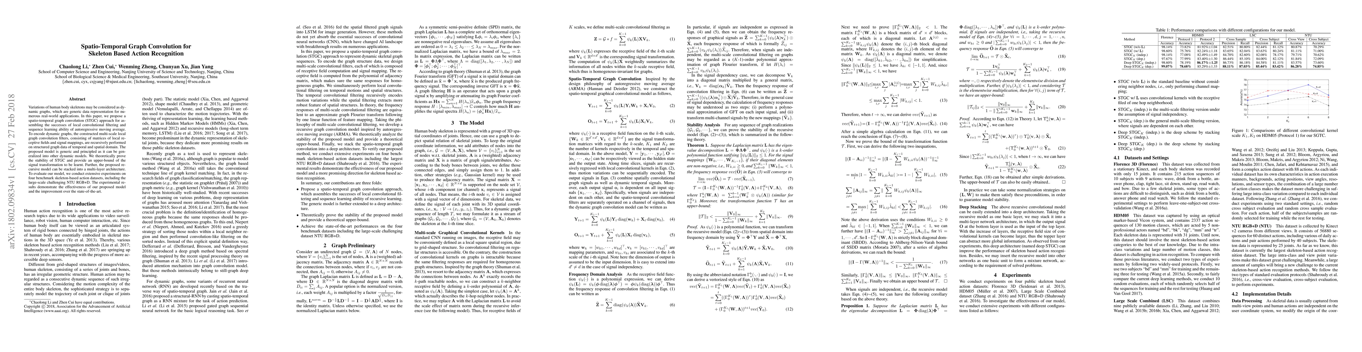 This paper proposes a spatio-temporal graph convolution (STGC) approach for skeleton-based action recognition, combining local convolutional filtering with sequence learning. The model uses recursive multi-scale local graph convolutions to encode dynamic graphs, demonstrating stability and effectiveness through experiments on benchmark datasets.