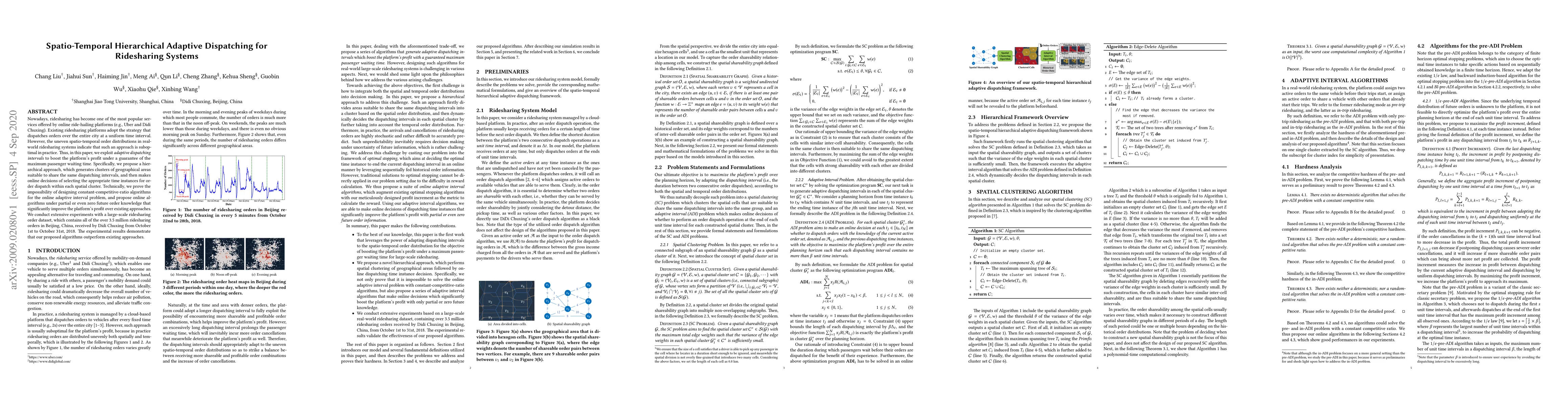 This paper proposes a hierarchical adaptive dispatching strategy for ridesharing systems to optimize profit by adjusting dispatch intervals based on spatio-temporal order distributions. The approach clusters geographical areas and selects optimal dispatch times within each cluster, significantly improving profit over uniform interval strategies, as demonstrated by experiments on a large dataset from Didi Chuxing.