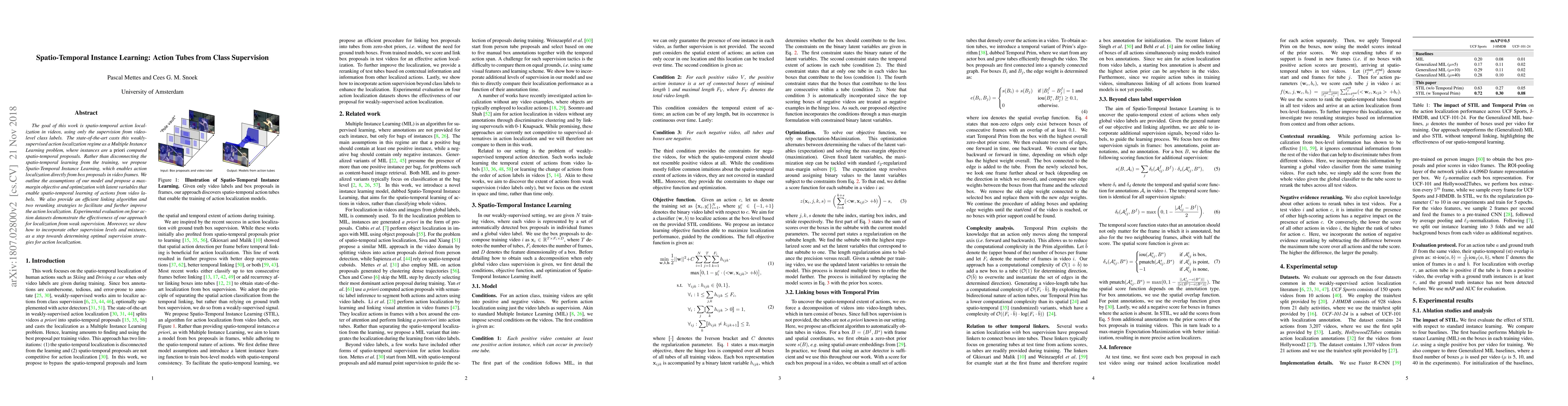 This paper proposes Spatio-Temporal Instance Learning to localize actions in videos using only video-level class labels, directly from spatio-temporal box proposals. It introduces a max-margin objective and optimization with latent variables to enable effective spatio-temporal learning, along with efficient linking and reranking strategies for improved localization.