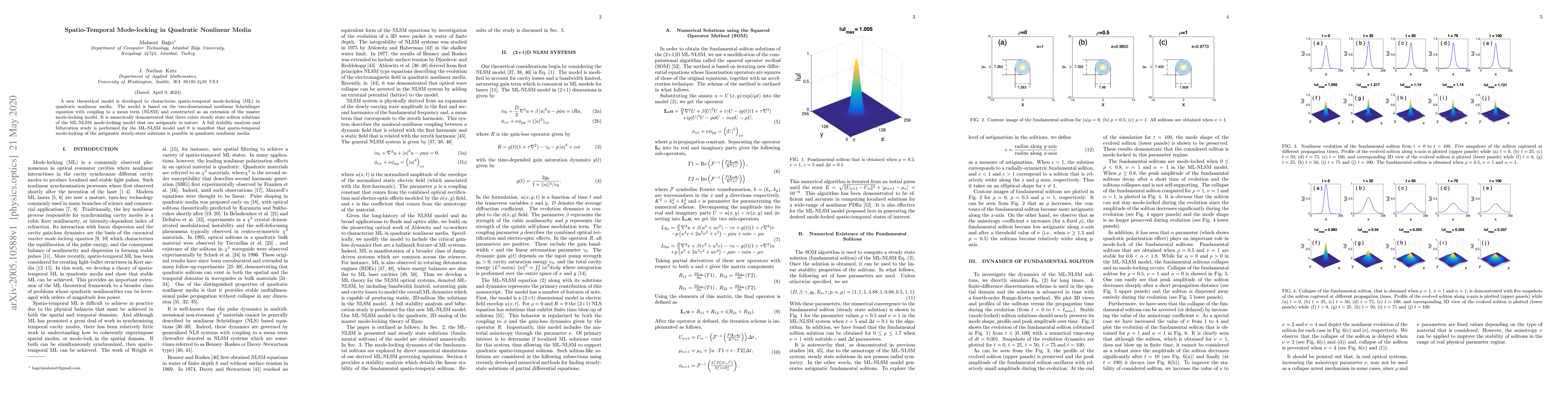 This paper develops a theoretical model for spatio-temporal mode-locking in quadratic nonlinear media using the extended NLSM equation. Numerical results show steady state soliton solutions that are astigmatic, and stability analysis confirms the feasibility of spatio-temporal mode-locking in such media.