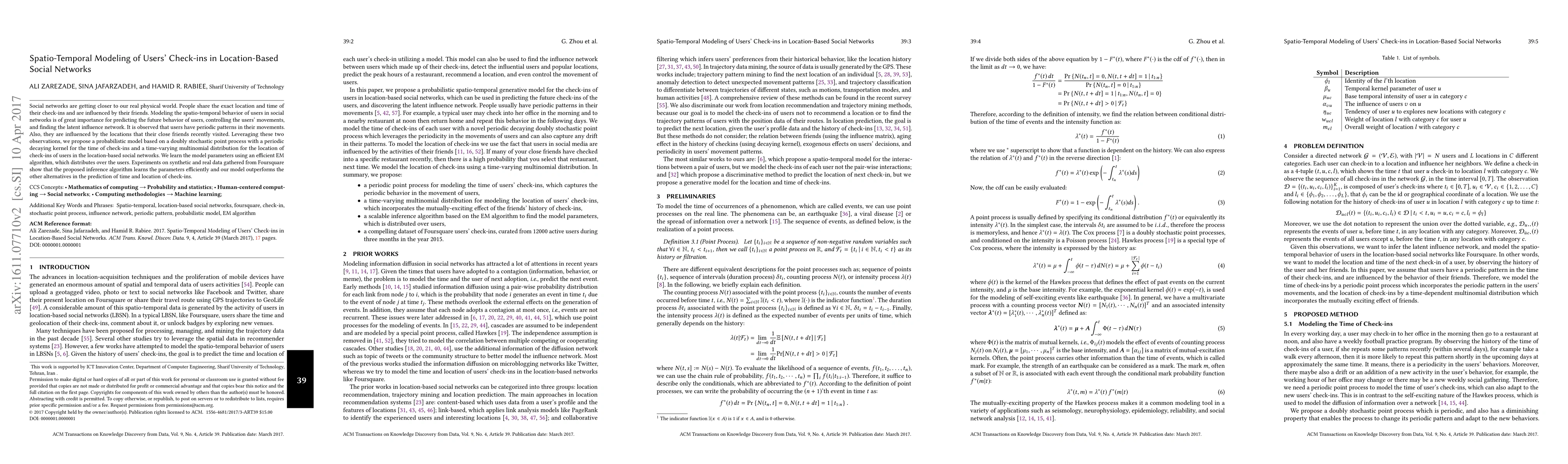 This paper proposes a probabilistic model to predict users' check-ins in location-based social networks by considering spatio-temporal patterns and social influence. The model uses a doubly stochastic point process and an efficient EM algorithm, demonstrating superior performance over other alternatives.
