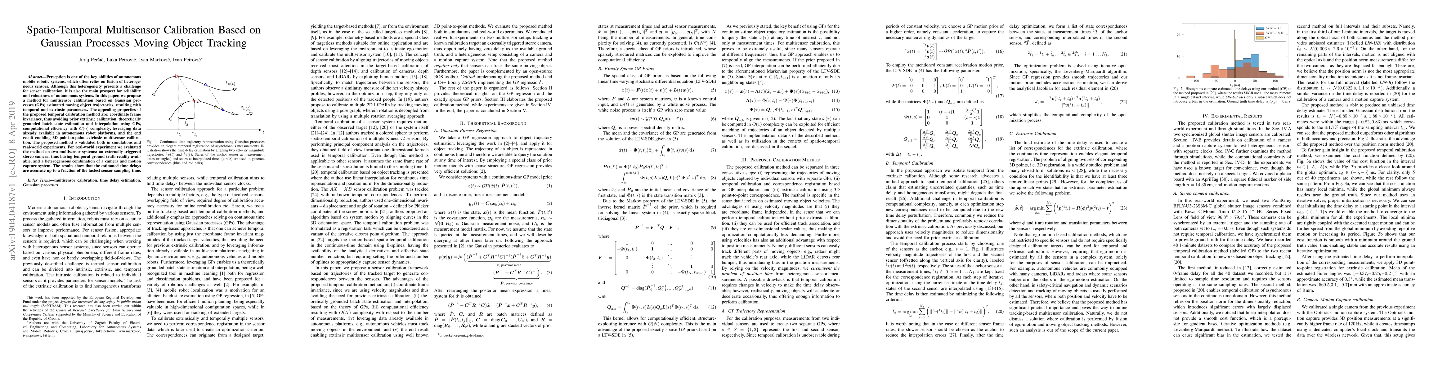 Perception is one of the key abilities of autonomous mobile robotic systems, which often relies on fusion of heterogeneous sensors. Although this heterogeneity presents a challenge for sensor calibration, it is also the main prospect for reliability and robustness of autonomous systems. In this paper, we propose a method for multisensor calibration based on Gaussian processes (GPs) estimated moving object trajectories, resulting with temporal and extrinsic parameters. The appealing properties of the proposed temporal calibration method are: coordinate frame invariance, thus avoiding prior extrinsic calibration, theoretically grounded batch state estimation and interpolation using GPs, computational efficiency with O(n) complexity, leveraging data already available in autonomous robot platforms, and the end result enabling 3D point-to-point extrinsic multisensor calibration. The proposed method is validated both in simulations and real-world experiments. For real-world experiment we evaluated the method on two multisensor systems: an externally triggered stereo camera, thus having temporal ground truth readily available, and a heterogeneous combination of a camera and motion capture system. The results show that the estimated time delays are accurate up to a fraction of the fastest sensor sampling time.