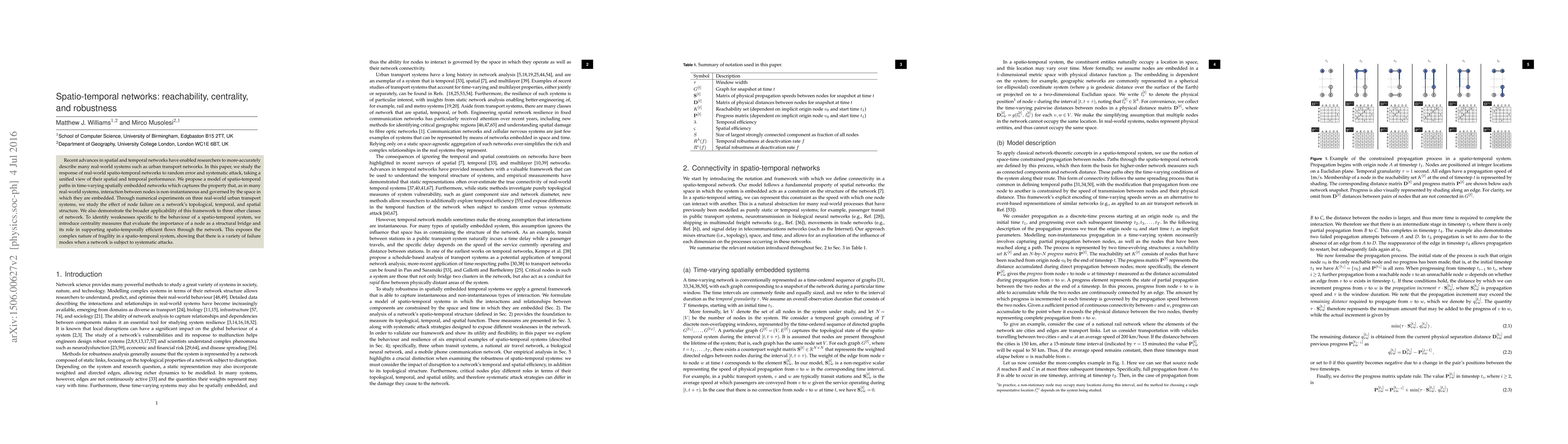 This paper investigates the robustness of spatio-temporal networks, such as urban transport systems, under random and systematic attacks, proposing a model for spatio-temporal paths and introducing centrality measures to identify critical nodes. The study reveals diverse failure modes in spatio-temporal networks and demonstrates the framework's applicability to various network types.