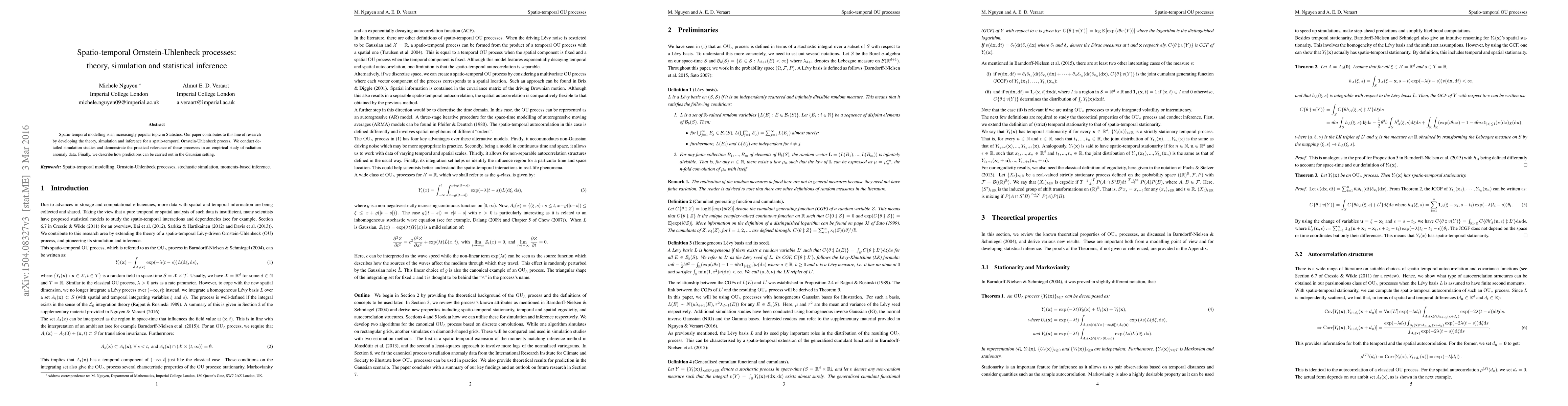 This paper develops the theory, simulation, and statistical inference for spatio-temporal Ornstein-Uhlenbeck processes, supported by detailed simulations and an empirical study on radiation anomaly data, while also outlining Gaussian prediction methods.