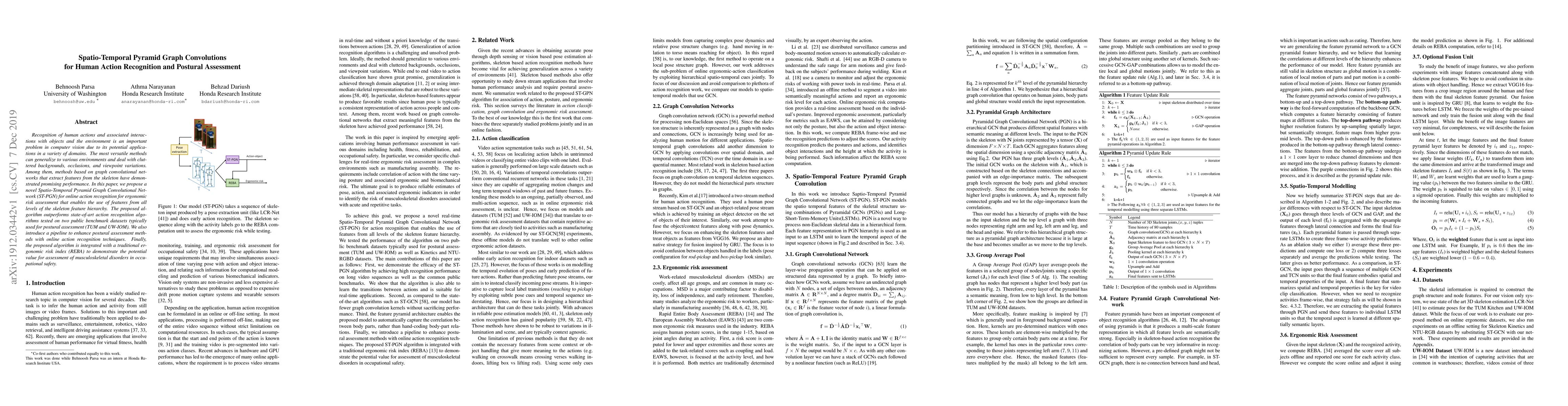 This paper proposes a Spatio-Temporal Pyramid Graph Convolutional Network (ST-PGN) for superior online human action recognition and ergonomic risk assessment. The method outperforms existing algorithms on benchmark datasets and integrates with traditional ergonomic risk indices to aid in the evaluation of musculoskeletal disorders.