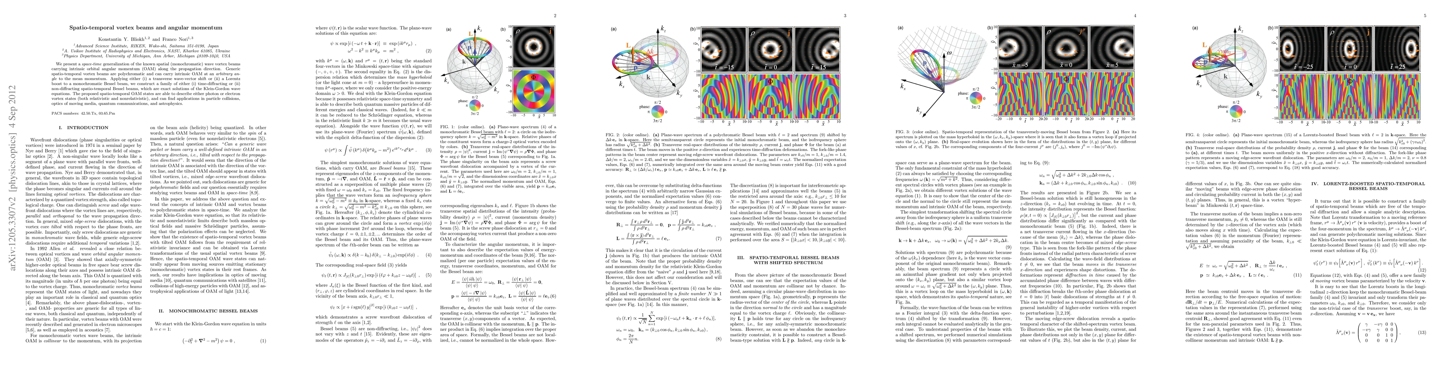 This paper generalizes spatial vortex beams to spatio-temporal vortex beams, which can carry intrinsic orbital angular momentum at any angle to the mean momentum. The authors construct these beams through wave-vector shifts or Lorentz boosts, applicable to both photons and electrons, and propose their use in particle collisions, quantum communications, and astrophysics.