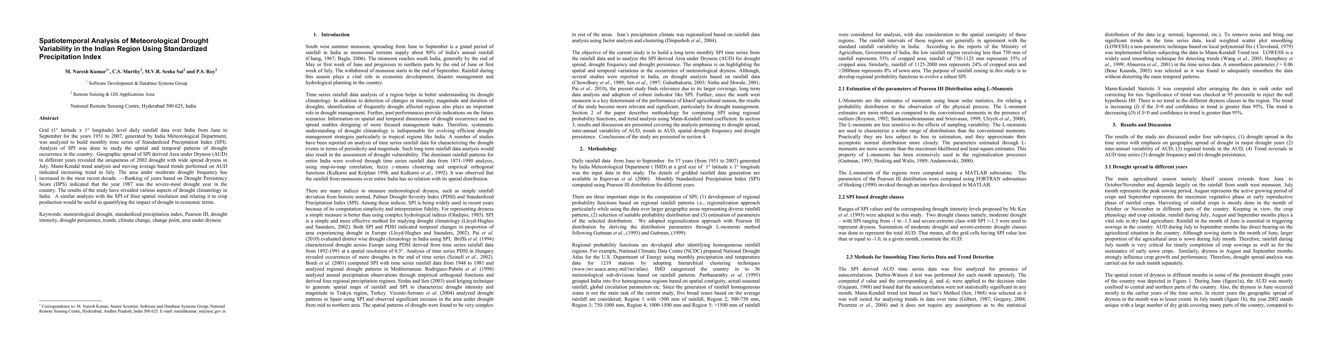 This study analyzed drought variability in India using Standardized Precipitation Index, revealing a unique 2002 drought and increasing trends in dryness, with the most severe drought occurring in 1987.