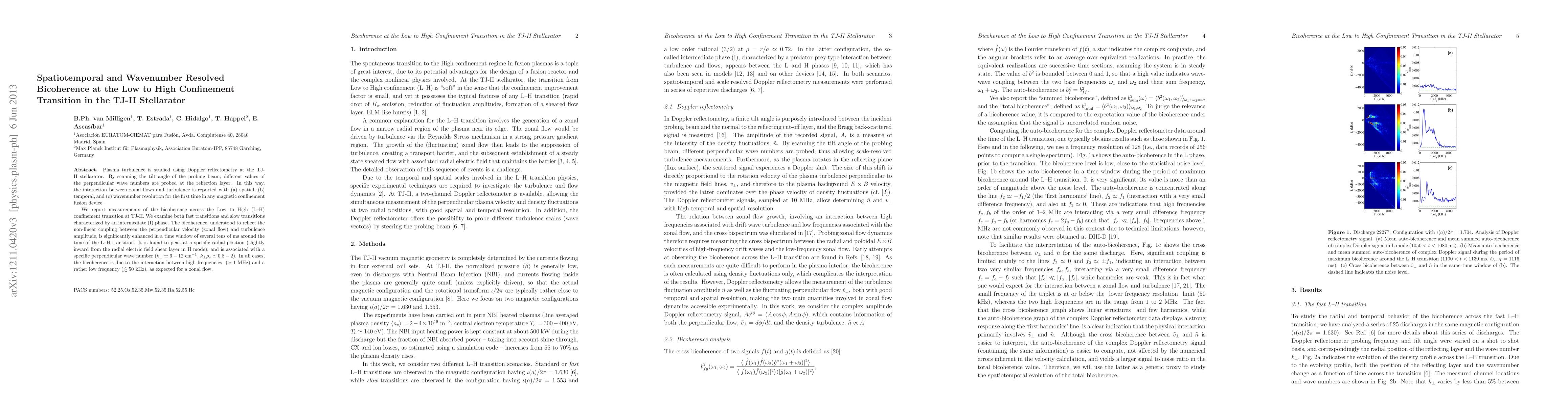 This paper investigates plasma turbulence in the TJ-II stellarator using Doppler reflectometry, revealing enhanced bicoherence at the Low to High confinement transition. The study identifies a specific radial position and wavenumber where the interaction between zonal flows and turbulence is most pronounced, highlighting the non-linear coupling dynamics.