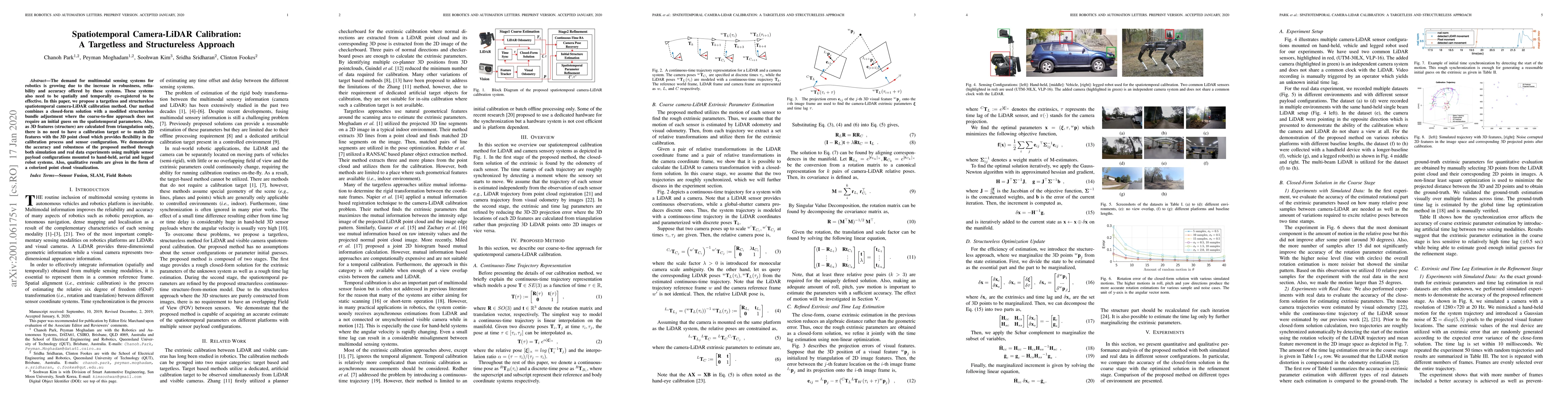 This paper presents a novel targetless and structureless spatiotemporal calibration method for camera-LiDAR systems, combining a closed-form solution with modified bundle adjustment. The method is demonstrated to be accurate and robust through simulations and real-world experiments on various robotic platforms.