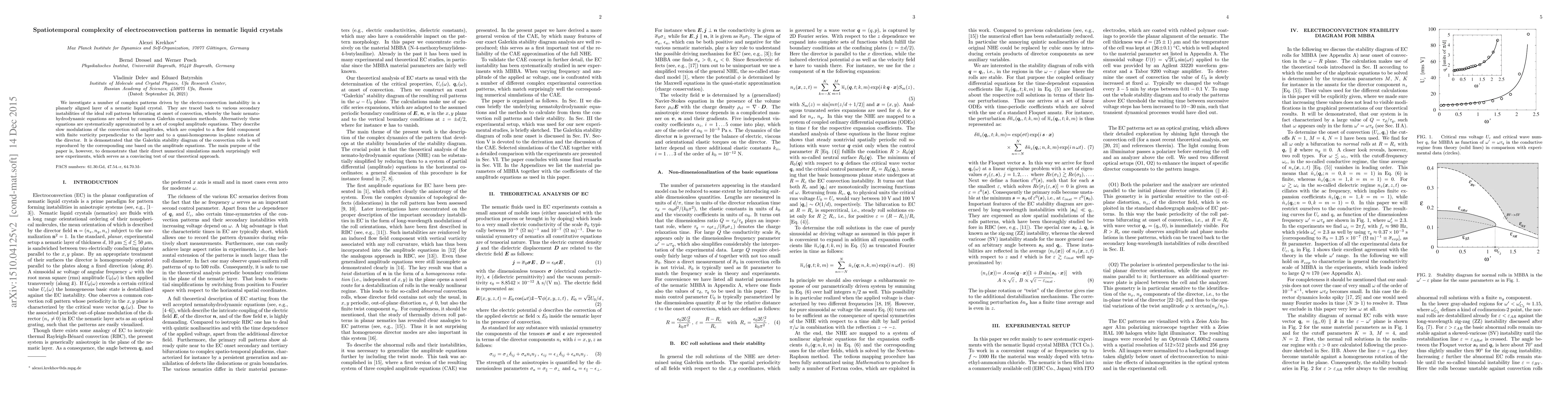We investigate a number of complex patterns driven by the electro-convection instability in a planarly aligned layer of a nematic liquid crystal. They are traced back to various secondary instabilities of the ideal roll patterns bifurcating at onset of convection, whereby the basic nemato-hydrodynamic equations are solved by common Galerkin expansion methods. Alternatively these equations are systematically approximated by a set of coupled amplitude equations. They describe slow modulations of the convection roll amplitudes, which are coupled to a flow field component with finite vorticity perpendicular to the layer and to a quasi-homogeneous in-plane rotation of the director. It is demonstrated that the Galerkin stability diagram of the convection rolls is well reproduced by the corresponding one based on the amplitude equations. The main purpose of the paper is, however, to demonstrate that their direct numerical simulations match surprisingly well new experiments, which serves as a convincing test of our theoretical approach.