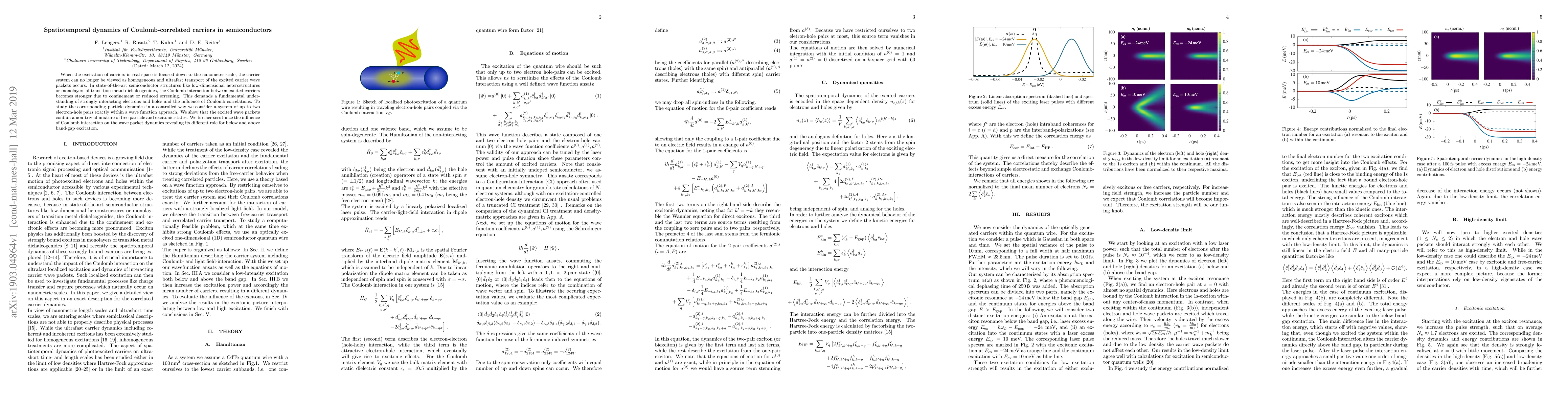 Researchers studied how electrons and holes behave when excited in tiny semiconductor structures, finding that strong interactions between them can create new wave packet states. They discovered the influence of these interactions varies depending on whether the excitation is below or above a certain energy threshold.