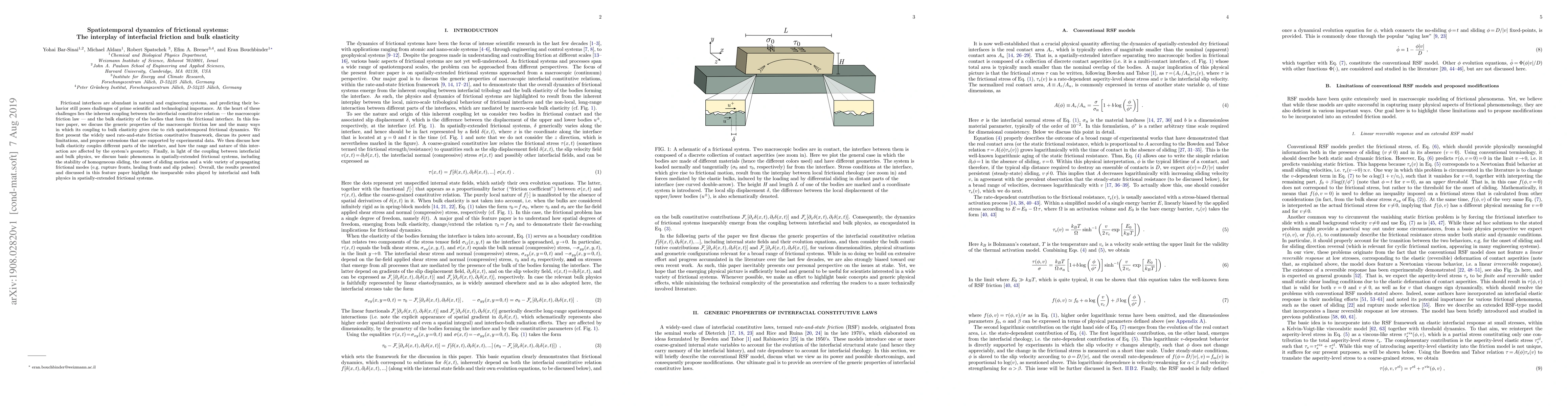 This paper explores the complex interplay between interfacial friction and bulk elasticity in frictional systems, emphasizing the spatiotemporal dynamics arising from their coupling. It discusses the rate-and-state friction framework, its extensions, and the impact of bulk elasticity on frictional phenomena, including the stability of sliding and the propagation of frictional modes.