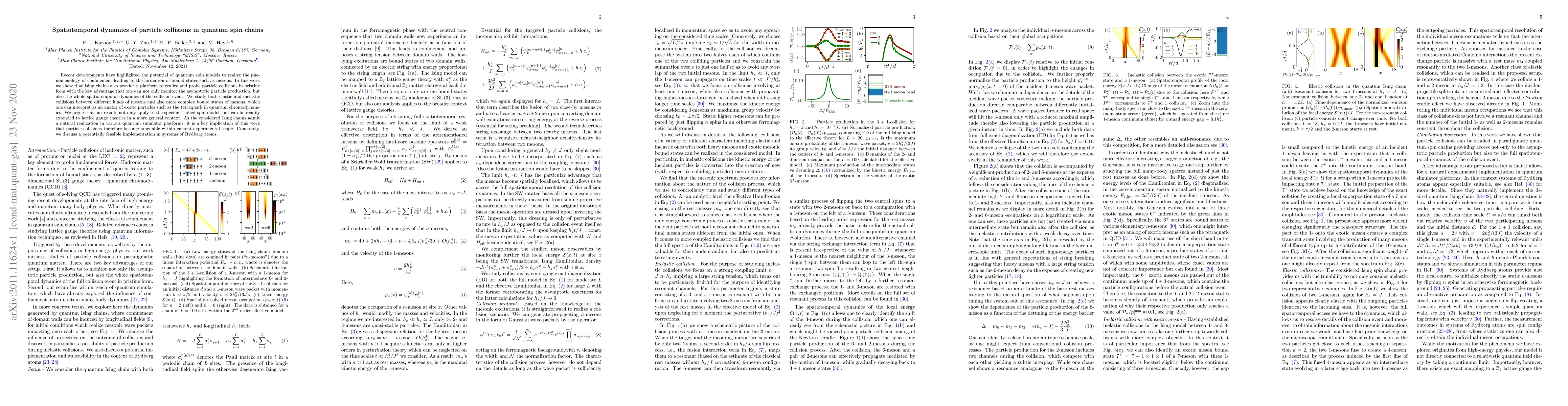 Recent developments have highlighted the potential of quantum spin models to realize the phenomenology of confinement leading to the formation of bound states such as mesons. In this work we show that Ising chains also provide a platform to realize and probe particle collisions in pristine form with the key advantage that one can not only monitor the asymptotic particle production, but also the whole spatiotemporal dynamics of the collision event. We study both elastic and inelastic collisions between different kinds of mesons and also more complex bound states of mesons, which one can interpret as an analog of exotic particles such as the tetraquark in quantum chromodynamics. We argue that our results not only apply to the specific studied spin model, but can be readily extended to lattice gauge theories in a more general context. As the considered Ising chains admit a natural realization in various quantum simulator platforms, it is a key implication of this work that particle collisions therefore become amenable within current experimental scope. Concretely, we discuss a potentially feasible implementation in systems of Rydberg atoms.