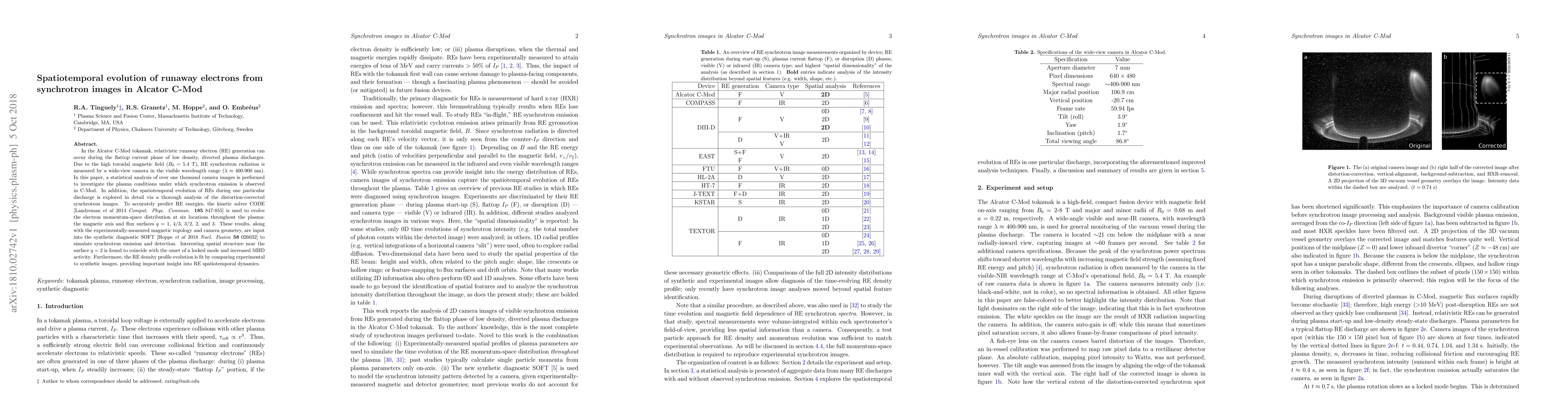 This paper investigates the spatiotemporal evolution of relativistic runaway electrons in Alcator C-Mod tokamak using synchrotron images and kinetic solvers. It finds spatial structures near magnetic surface q = 2 linked to locked modes and MHD activity, and uses synthetic diagnostics to simulate and compare with experimental data for insights into RE dynamics.