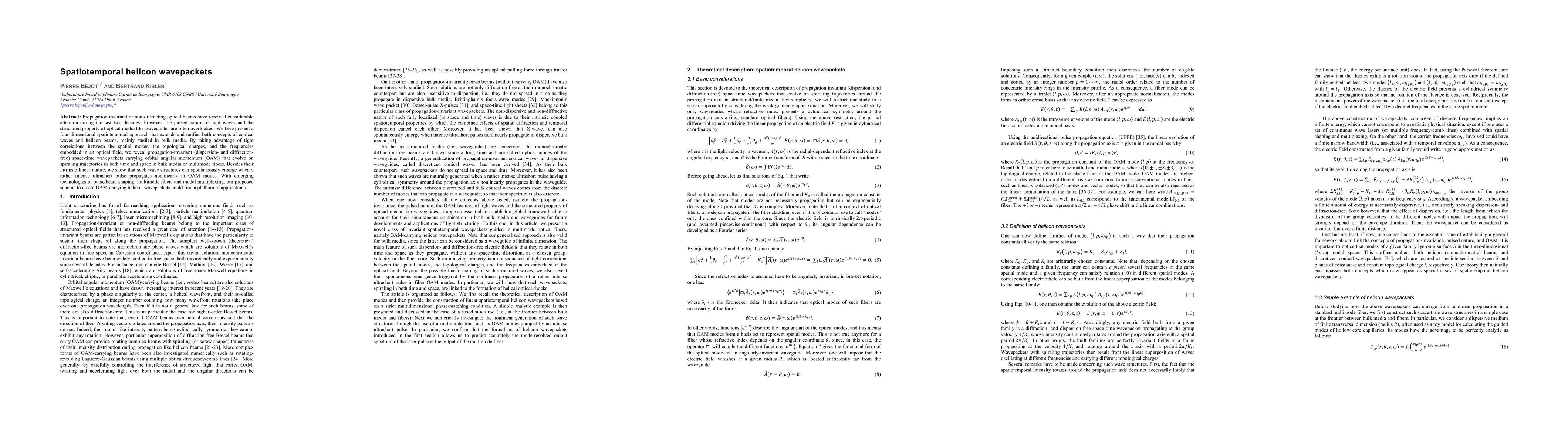 This paper presents a four-dimensional spatiotemporal approach to create propagation-invariant helicon wavepackets that are dispersion- and diffraction-free, carrying orbital angular momentum and evolving on spiraling trajectories. These wavepackets can emerge nonlinearly from intense ultrashort pulses and have potential applications in optical technologies.