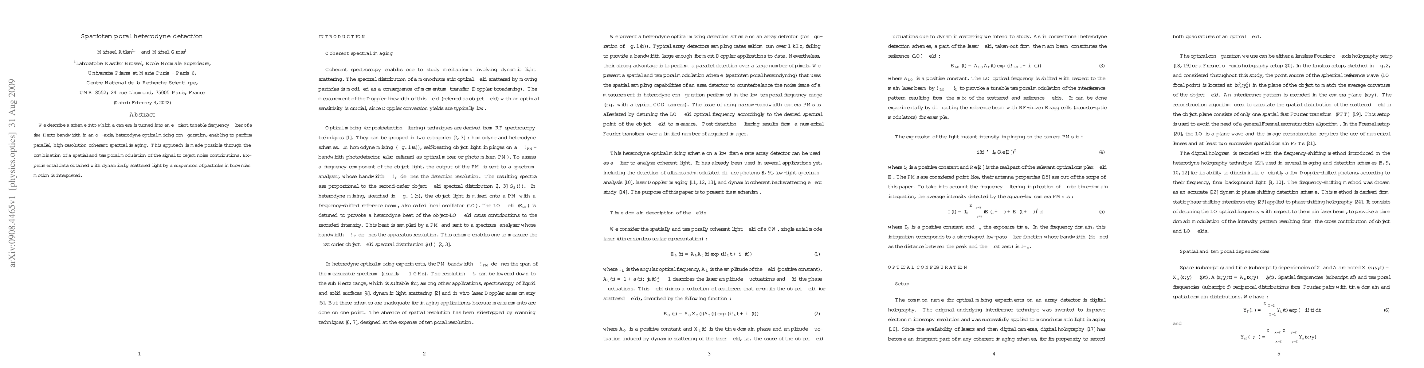 We describe a scheme into which a camera is turned into an efficient tunable frequency filter of a few Hertz bandwidth in an off-axis, heterodyne optical mixing configuration, enabling to perform parallel, high-resolution coherent spectral imaging. This approach is made possible through the combination of a spatial and temporal modulation of the signal to reject noise contributions. Experimental data obtained with dynamically scattered light by a suspension of particles in brownian motion is interpreted.