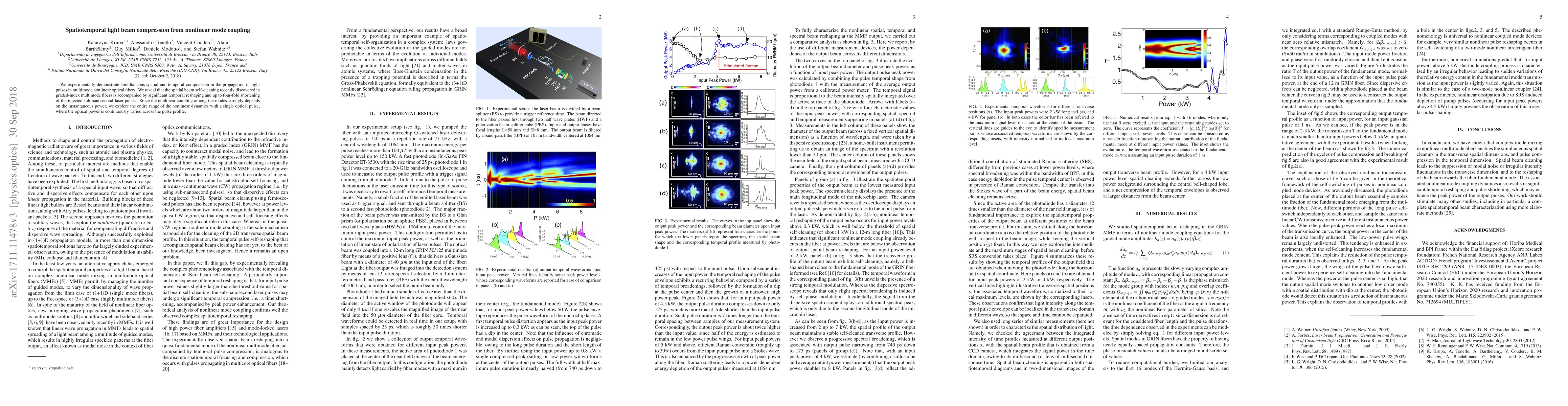 This research demonstrates the simultaneous spatial and temporal compression of light pulses in multimode nonlinear optical fibers, revealing that spatial beam self-cleaning is accompanied by significant temporal reshaping and up to four-fold shortening of sub-nanosecond laser pulses due to nonlinear mode coupling.