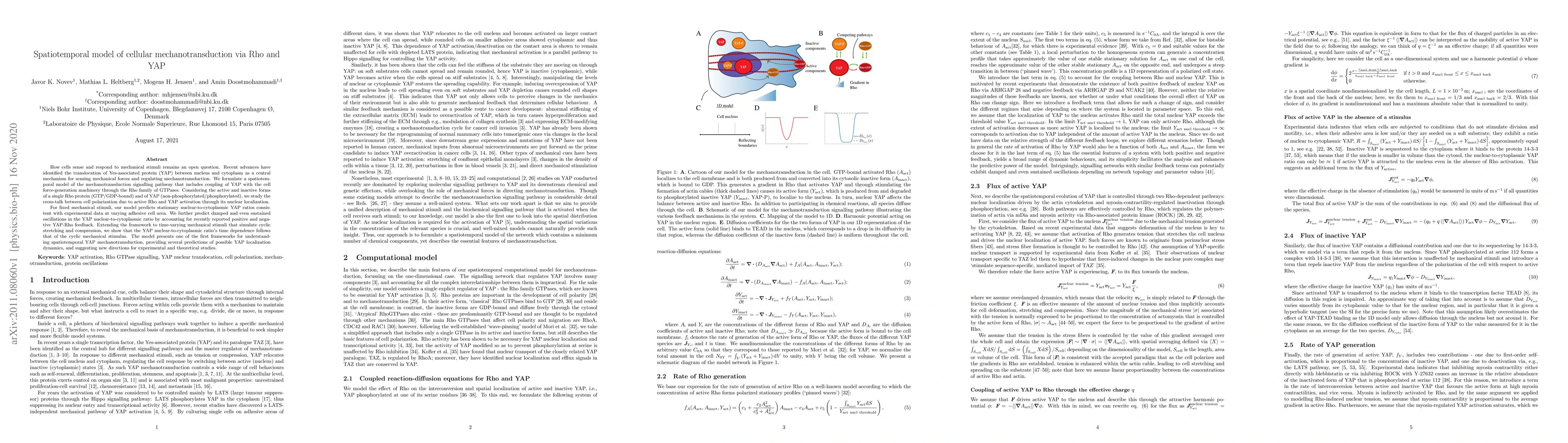 This paper formulates a spatiotemporal model to elucidate how cells sense mechanical stimuli via the Rho-YAP pathway, predicting YAP's nuclear-to-cytoplasmic dynamics under both fixed and cyclic mechanical stimuli. The model highlights the interplay between Rho GTPases and YAP, offering insights into mechanotransduction mechanisms.
