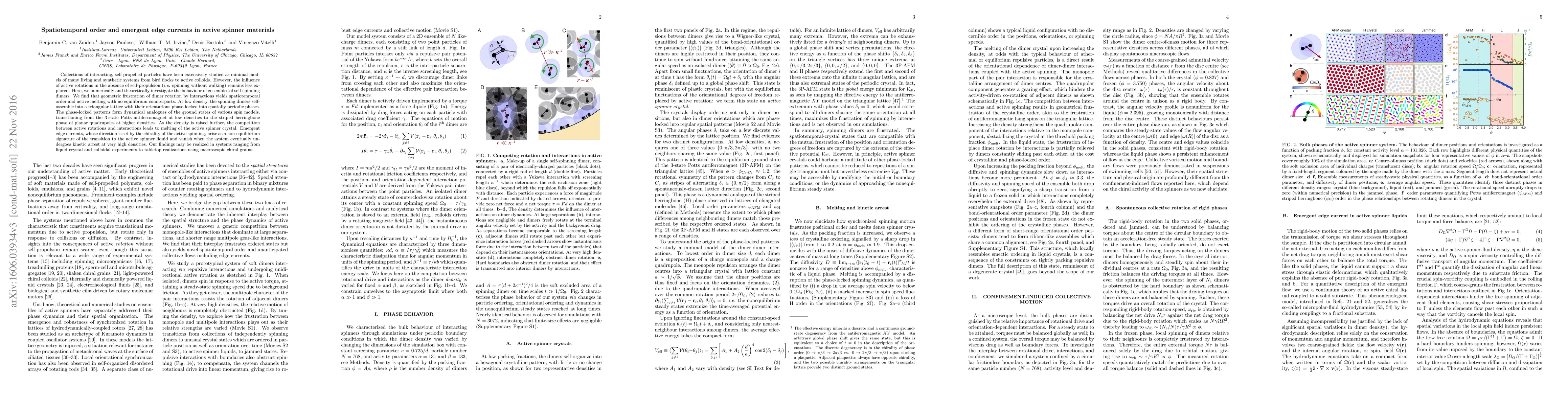 Researchers discovered that spinning dimers can form a crystalline structure with emergent edge currents, which vanish at high densities, and this phenomenon can be observed in various systems including liquid crystals and colloids.