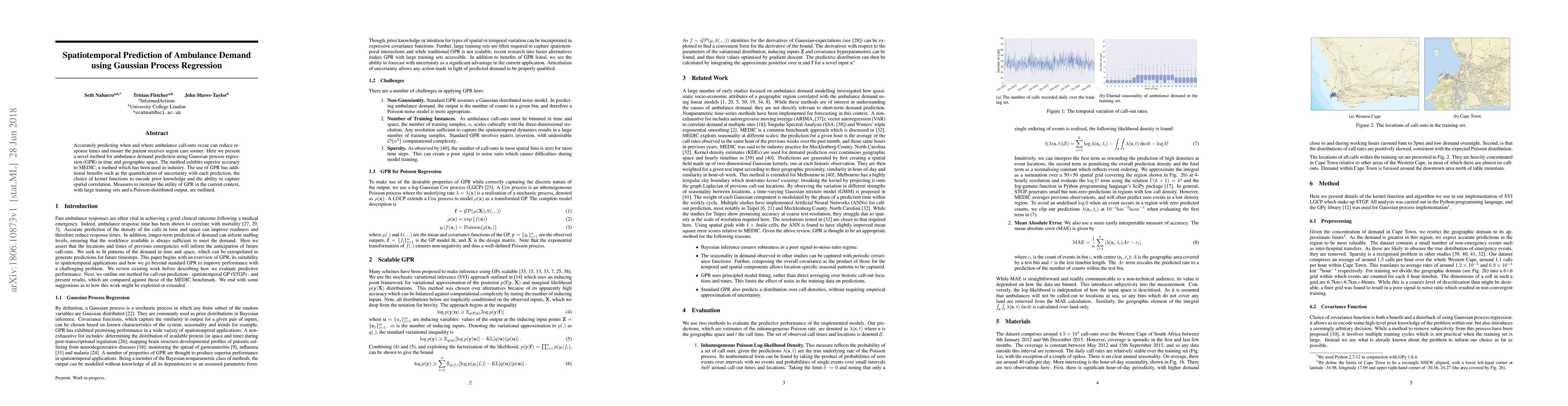 Accurately predicting when and where ambulance call-outs occur can reduce response times and ensure the patient receives urgent care sooner. Here we present a novel method for ambulance demand prediction using Gaussian process regression (GPR) in time and geographic space. The method exhibits superior accuracy to MEDIC, a method which has been used in industry. The use of GPR has additional benefits such as the quantification of uncertainty with each prediction, the choice of kernel functions to encode prior knowledge and the ability to capture spatial correlation. Measures to increase the utility of GPR in the current context, with large training sets and a Poisson-distributed output, are outlined.