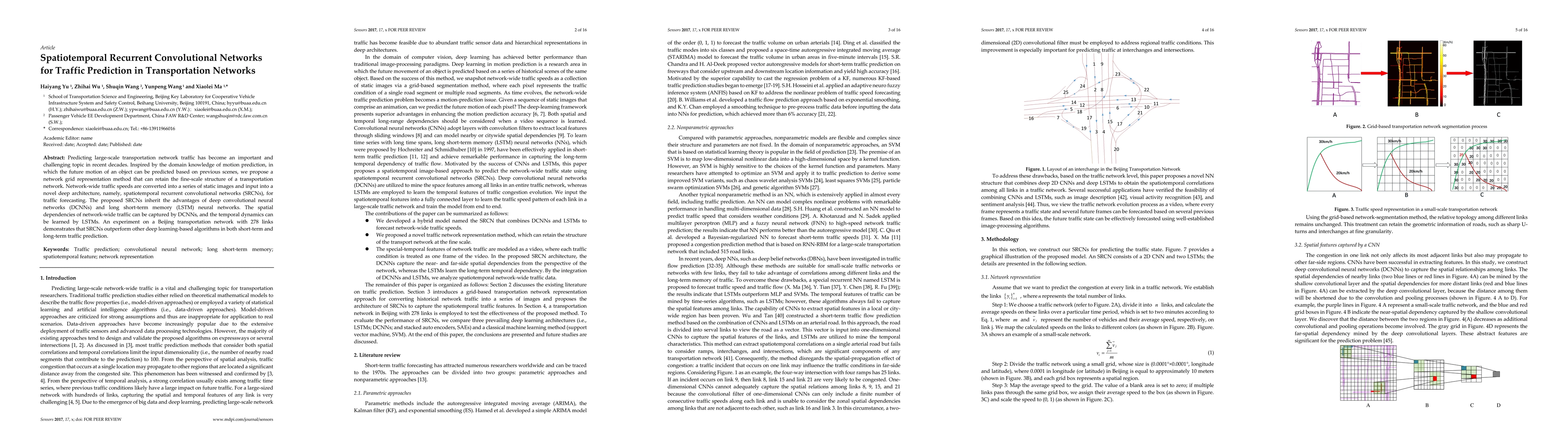 This paper proposes spatiotemporal recurrent convolutional networks (SRCNs) for predicting traffic in large-scale transportation networks, combining deep convolutional and LSTM neural networks to capture spatial and temporal dynamics. Experiments on Beijing’s transportation network show SRCNs outperform other deep learning methods in both short-term and long-term traffic forecasting.