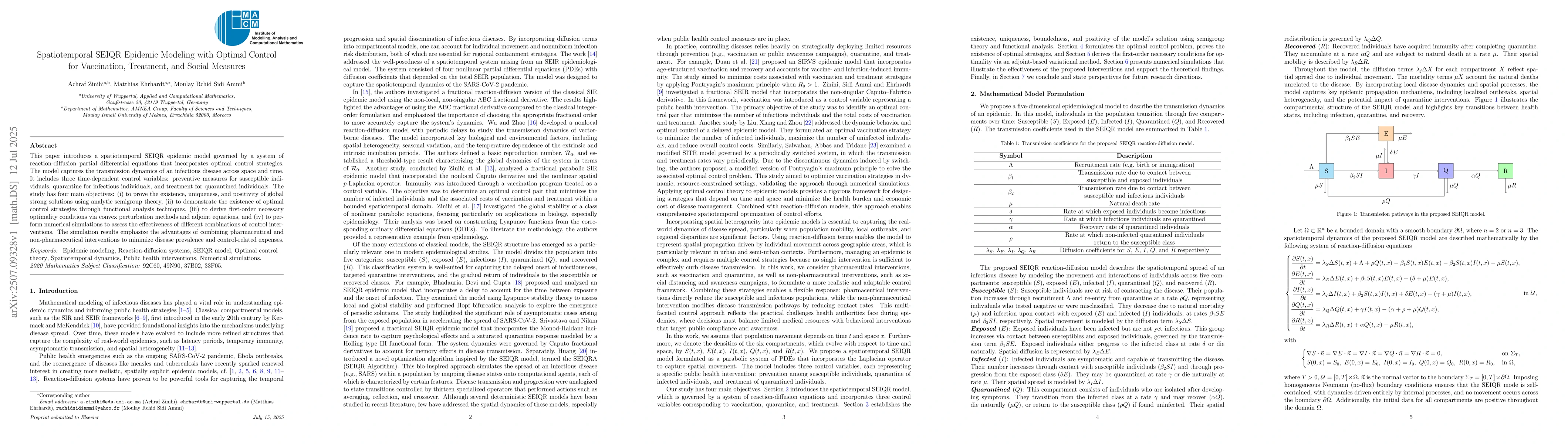 This paper introduces a spatiotemporal SEIQR epidemic model governed by a system of reaction-diffusion partial differential equations that incorporates optimal control strategies. The model captures the transmission dynamics of an infectious disease across space and time. It includes three time-dependent control variables: preventive measures for susceptible individuals, quarantine for infectious individuals, and treatment for quarantined individuals. The study has four main objectives: (i) to prove the existence, uniqueness, and positivity of global strong solutions using analytic semigroup theory, (ii) to demonstrate the existence of optimal control strategies through functional analysis techniques, (iii) to derive first-order necessary optimality conditions via convex perturbation methods and adjoint equations, and (iv) to perform numerical simulations to assess the effectiveness of different combinations of control interventions. The simulation results emphasize the advantages of combining pharmaceutical and non-pharmaceutical interventions to minimize disease prevalence and control-related expenses.