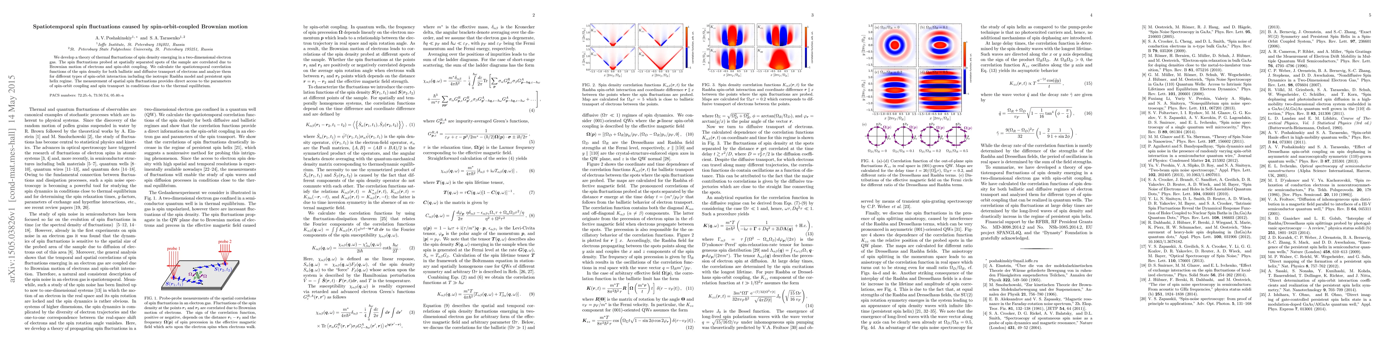 This paper develops a theoretical framework for understanding thermal spin fluctuations in a two-dimensional electron gas, showing how Brownian motion and spin-orbit coupling lead to correlated spin density fluctuations. It provides spatiotemporal correlation functions for both ballistic and diffusive transport, analyzing different spin-orbit interaction models to reveal insights into spin-orbit coupling parameters near thermal equilibrium.
